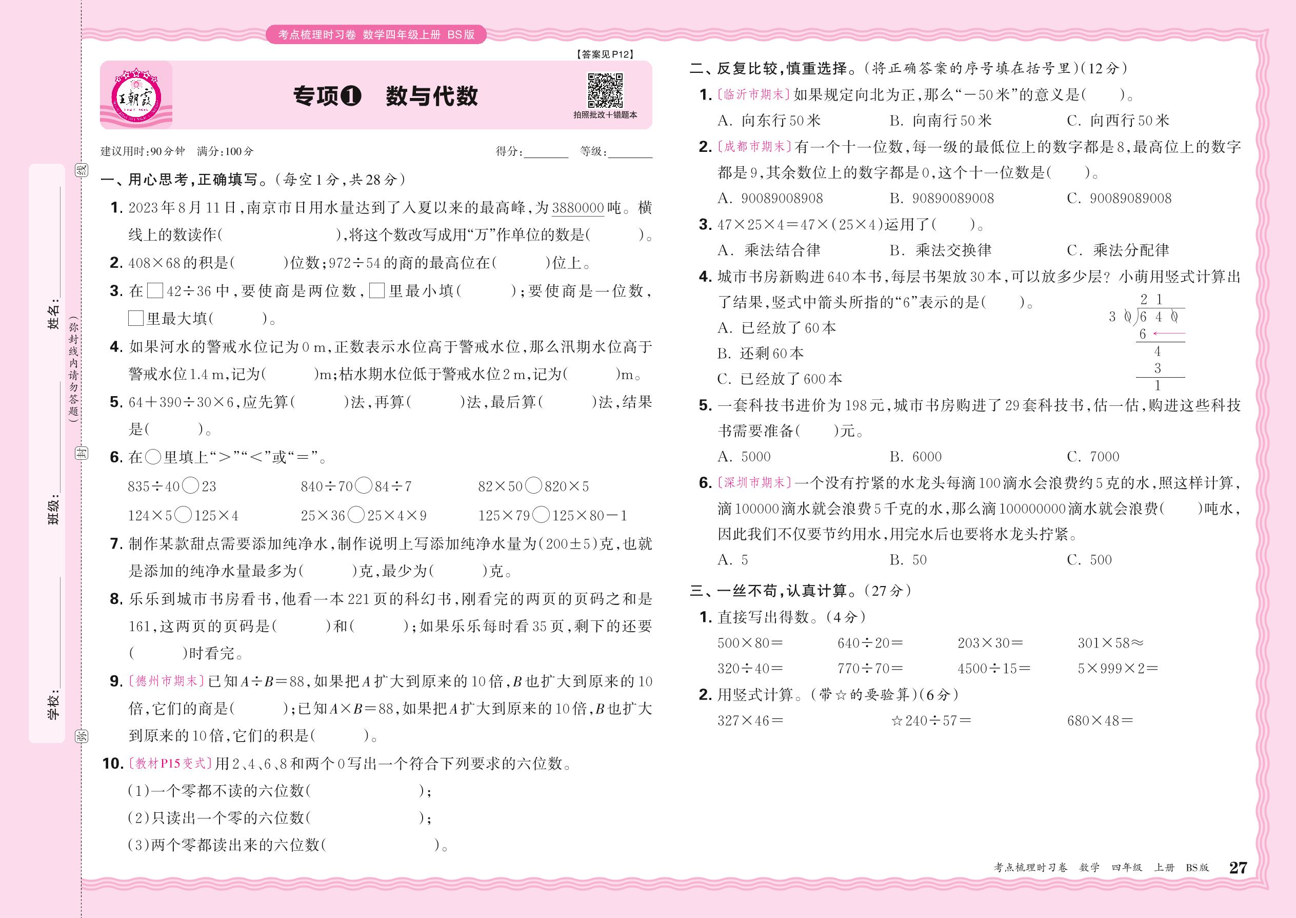 2024秋上册四年级数学北师版 期末专项卷KD版·数与代数【1】