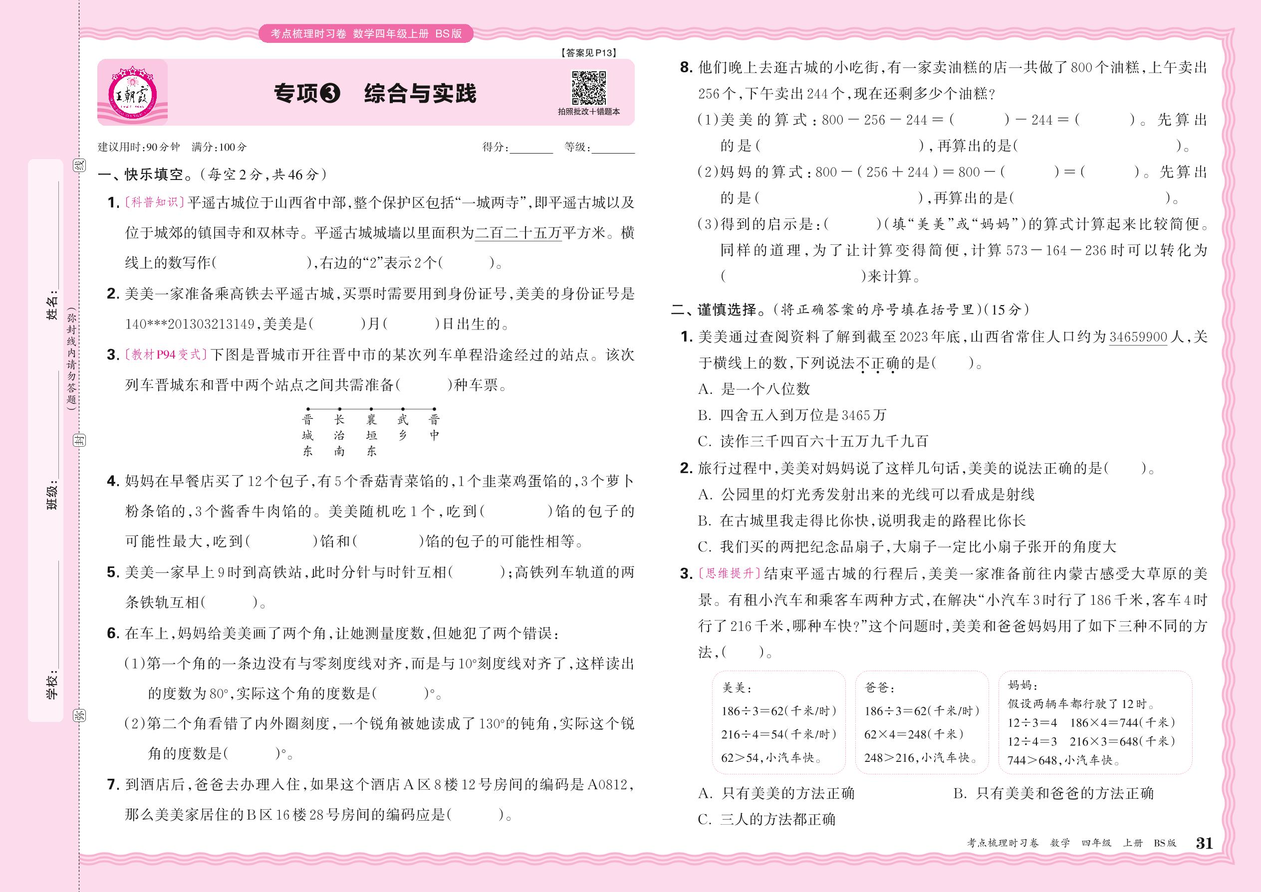 2024秋上册四年级数学北师版 期末专项卷KD版·综合与实践【3】