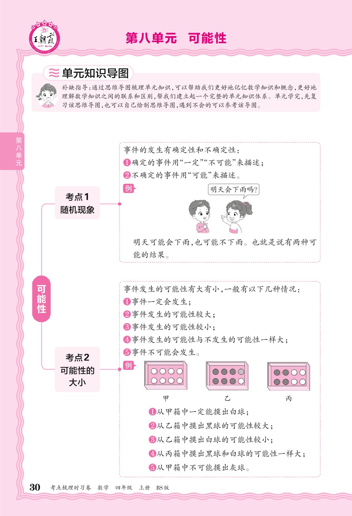 2024秋上册四年级数学北师版 考点梳理补缺手册——第八单元 可能性