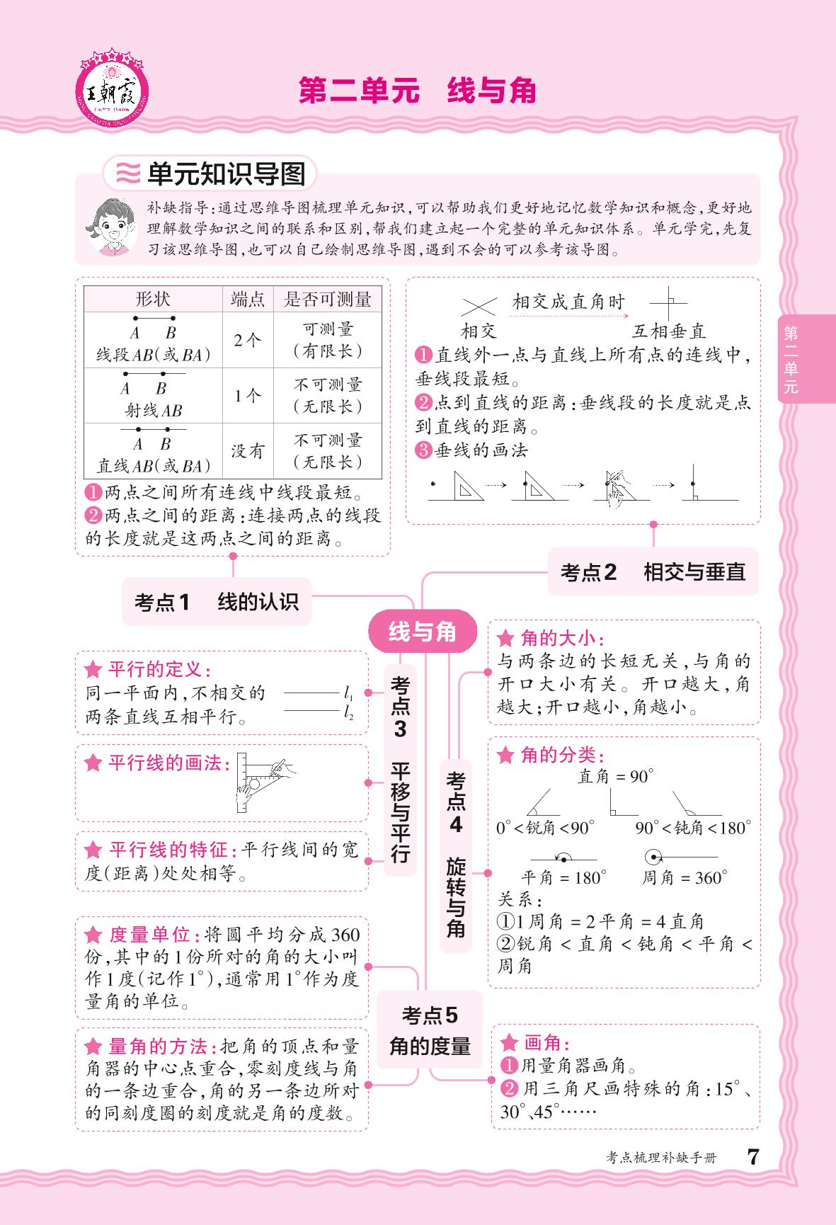 2024秋上册四年级数学北师版 考点梳理补缺手册——第二单元 线与角