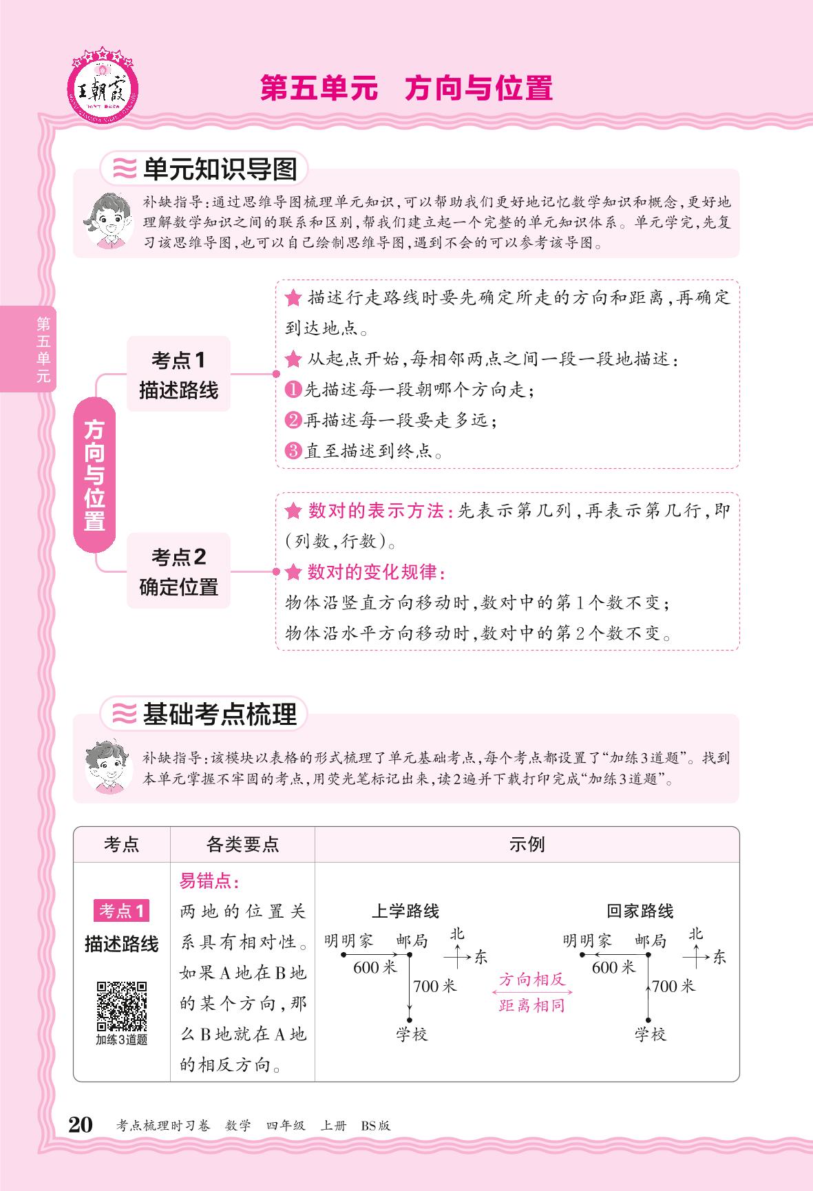 2024秋上册四年级数学北师版 考点梳理补缺手册——第五单元 方向与位置