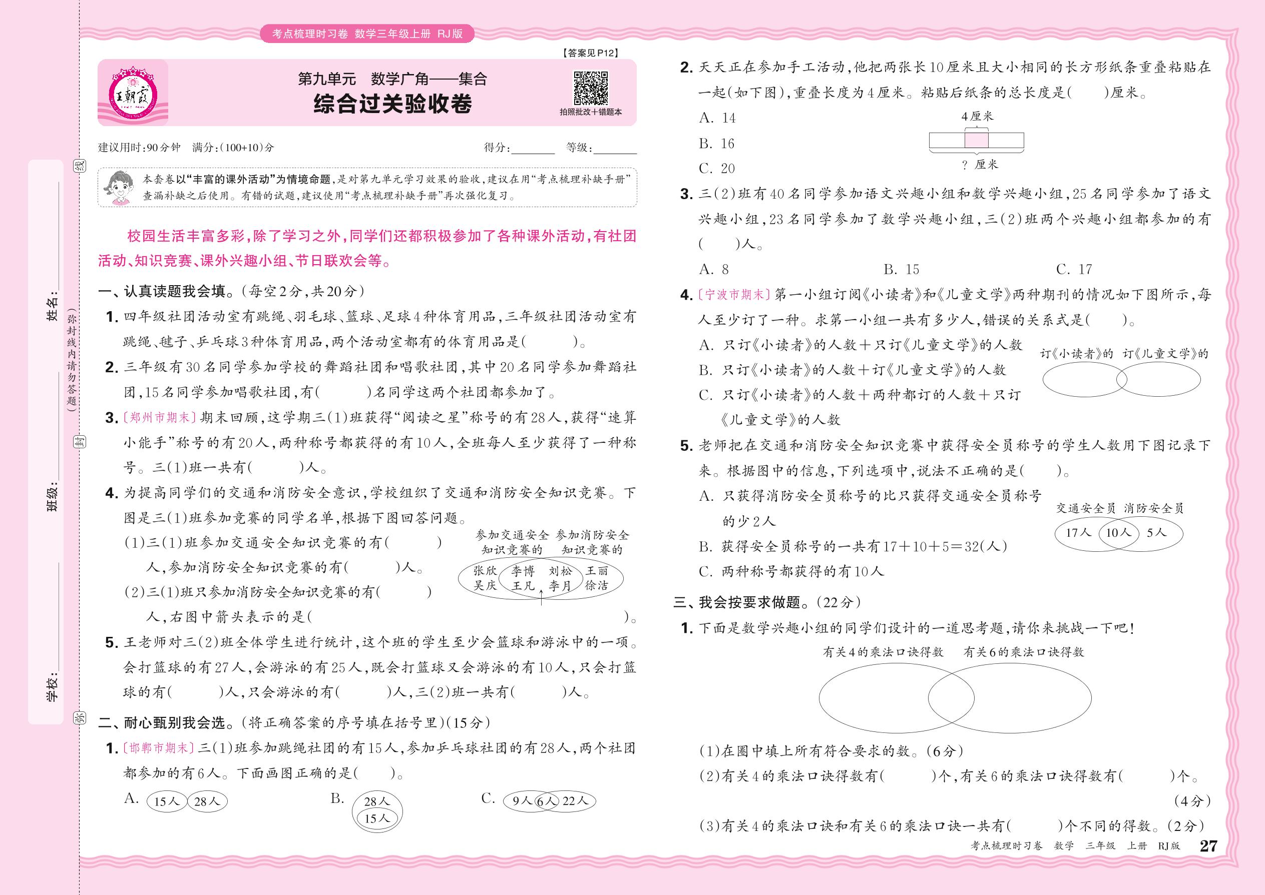 2024秋上册三年级数学人教版 第九单元 综合过关验收卷