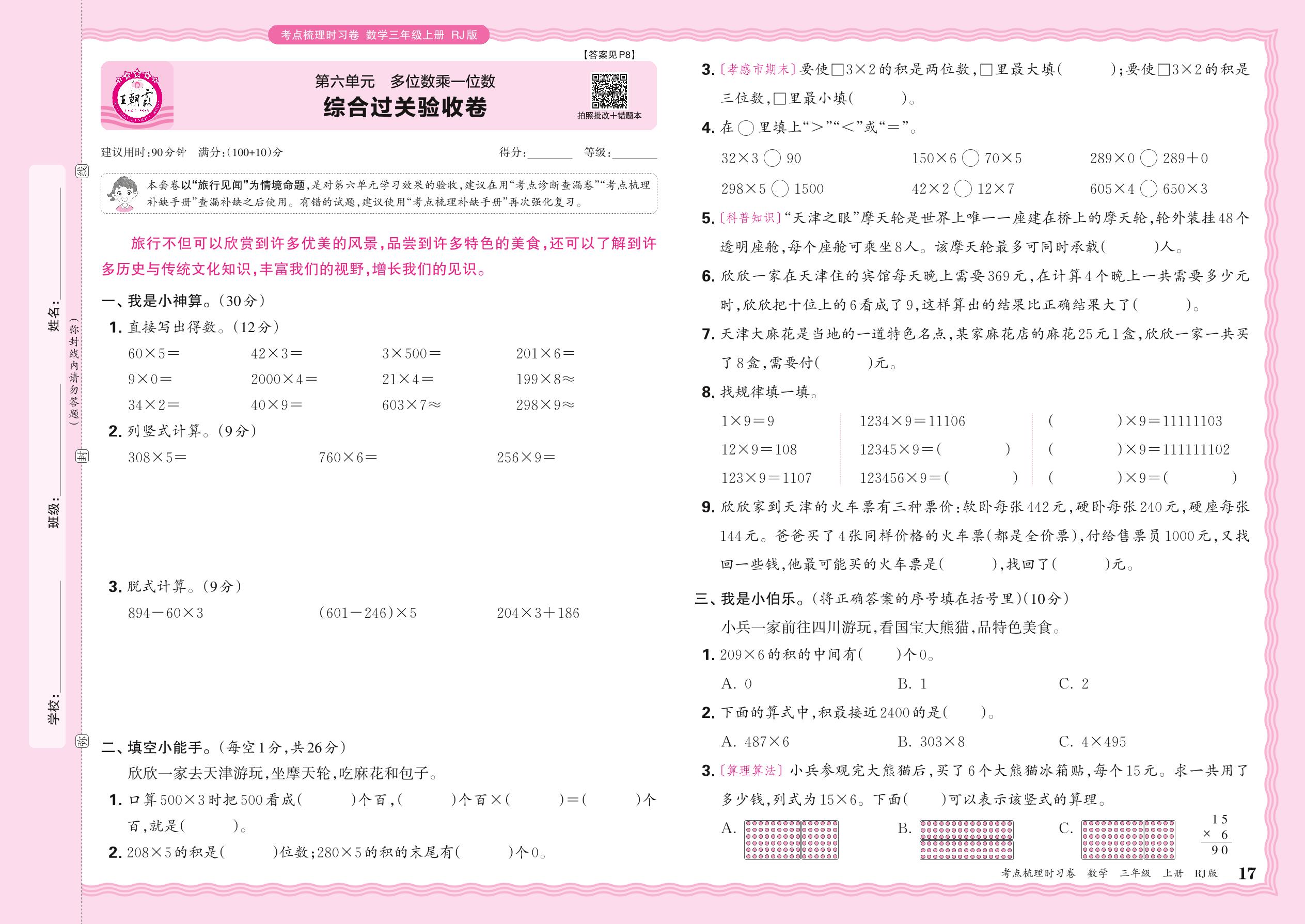 2024秋上册三年级数学人教版 第六单元 综合过关验收卷