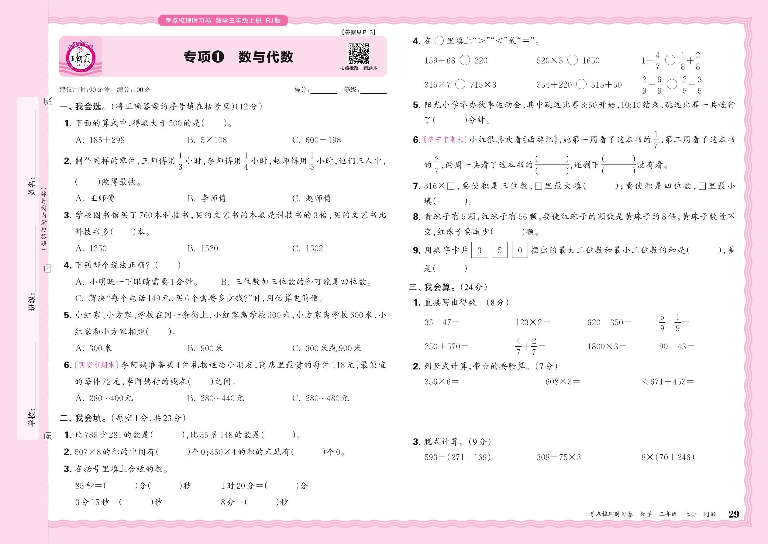 2024秋上册三年级数学人教版 期末专项卷KD版·数与代数【1】