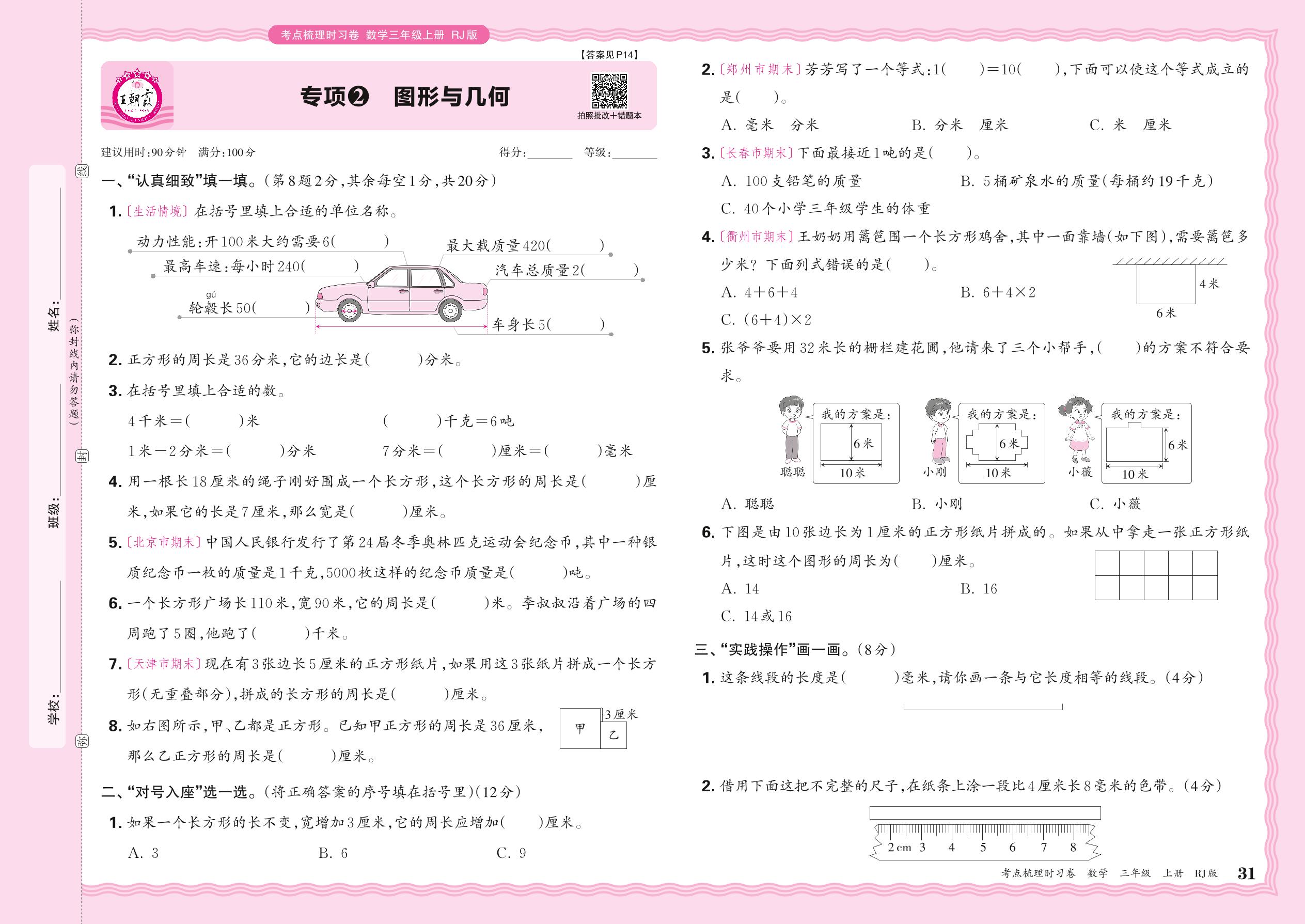 2024秋上册三年级数学人教版 期末专项卷KD版·图形与几何【2】