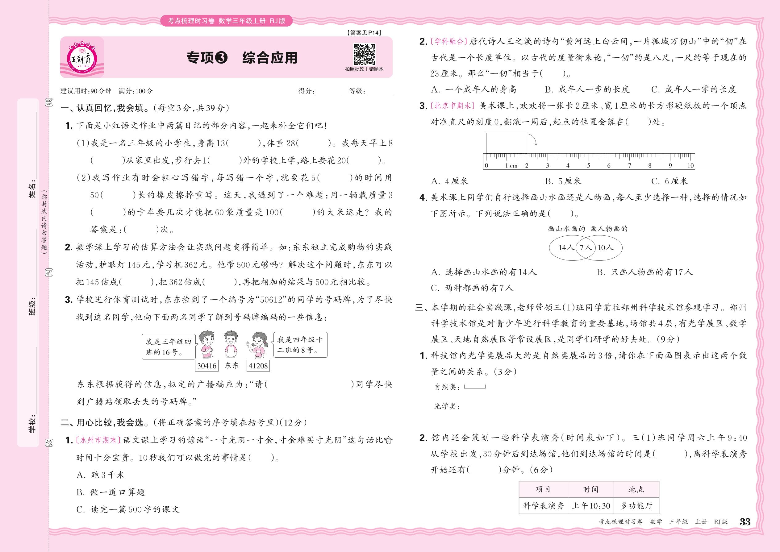 2024秋上册三年级数学人教版 期末专项卷KD版·综合应用【3】