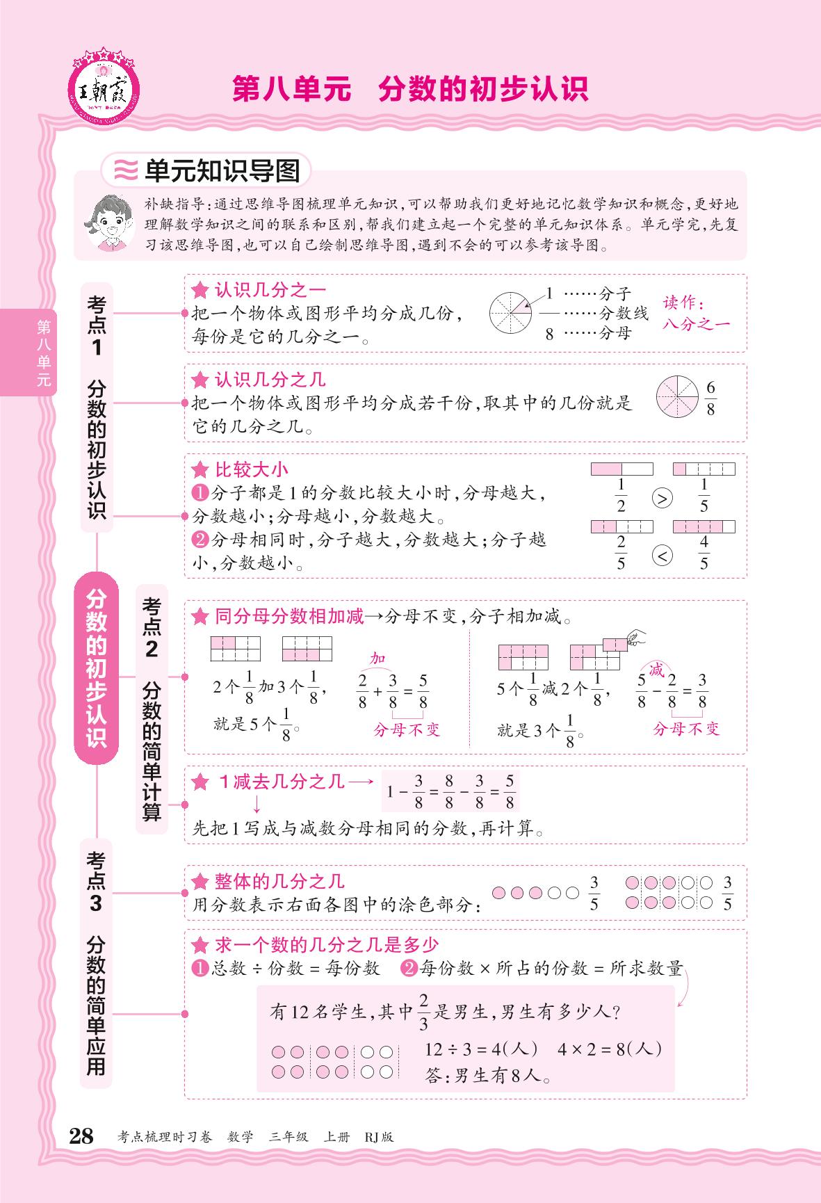 2024秋上册三年级数学人教版 考点梳理补缺手册——第八单元 分数的初步认识