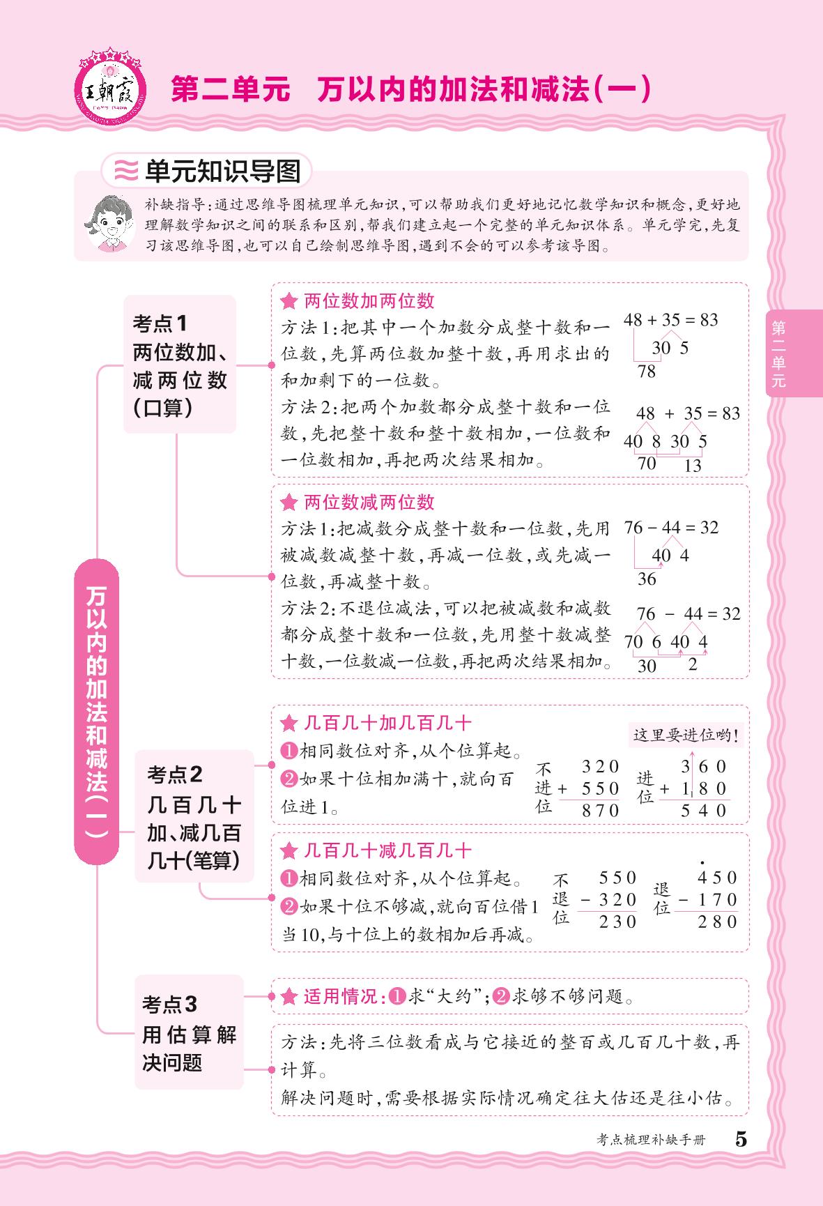 2024秋上册三年级数学人教版 考点梳理补缺手册——第二单元 万以内的加法和减法(一)