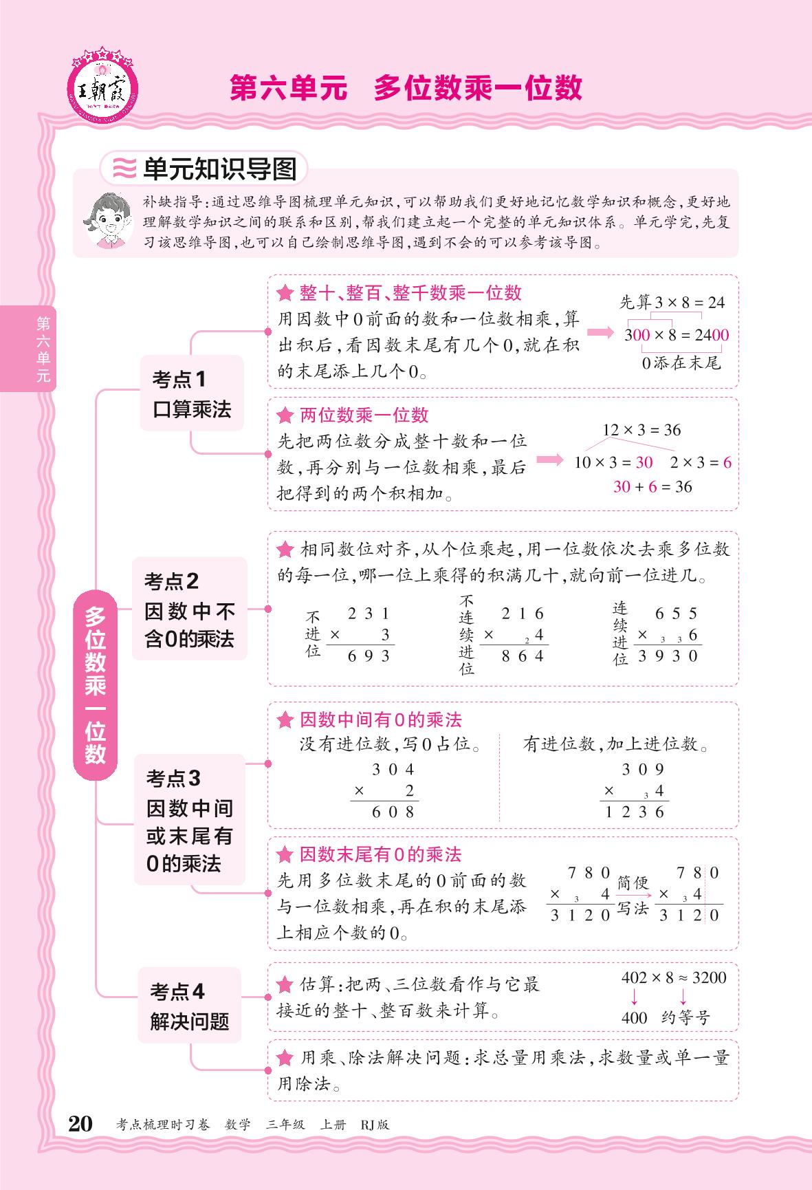 2024秋上册三年级数学人教版 考点梳理补缺手册——第六单元 多位数乘一位数