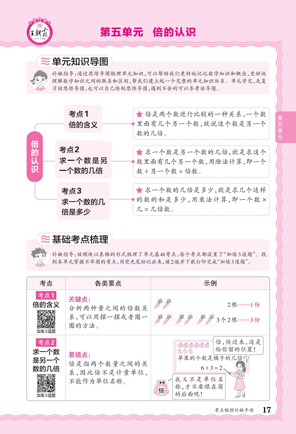 2024秋上册三年级数学人教版 考点梳理补缺手册——第五单元 倍的认识