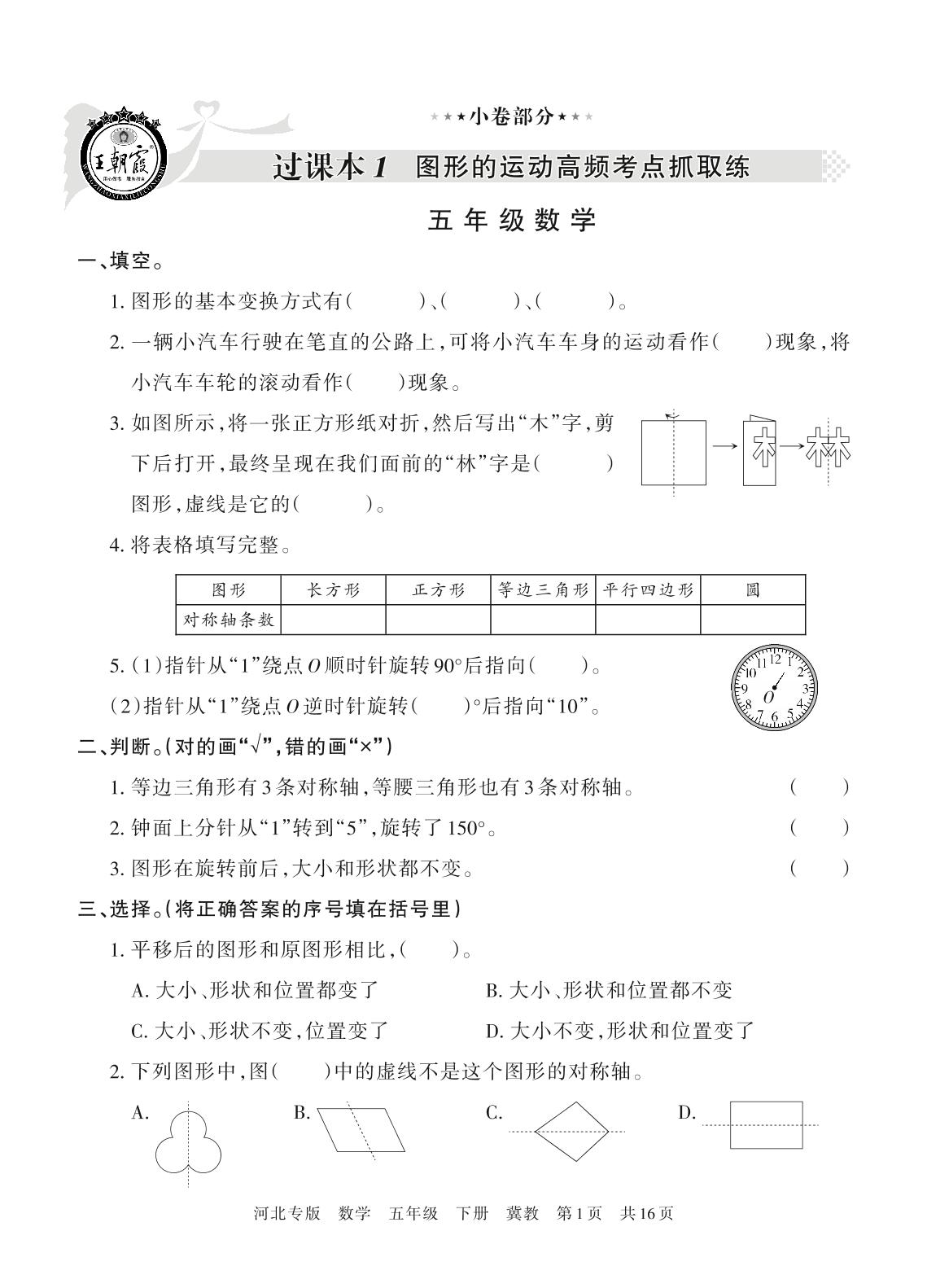 王朝霞期末小卷五年级下册数学(冀教版)【0】