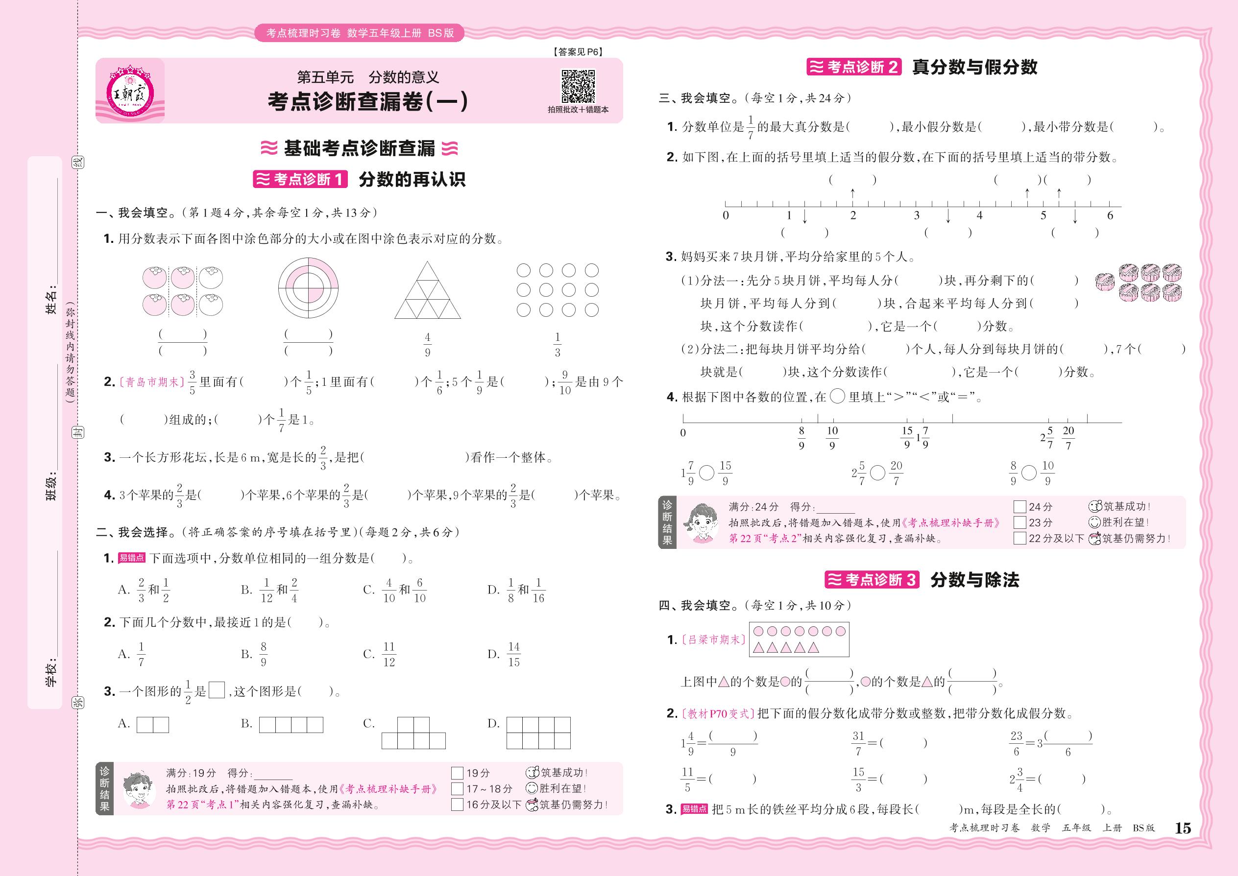 2024秋上册五年级数学北师版 第五单元 考点诊断查漏卷(一)