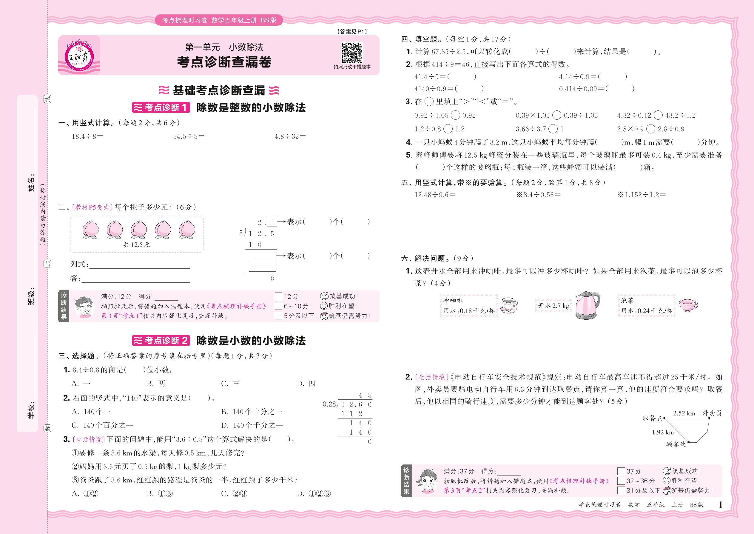 2024秋上册五年级数学北师版 第一单元 考点诊断查漏卷