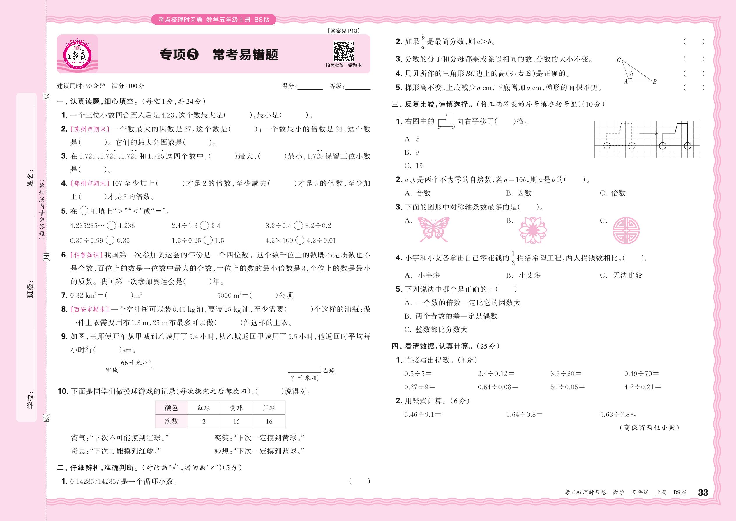 2024秋上册五年级数学北师版 期末专项卷KD版·常考易错题【5】