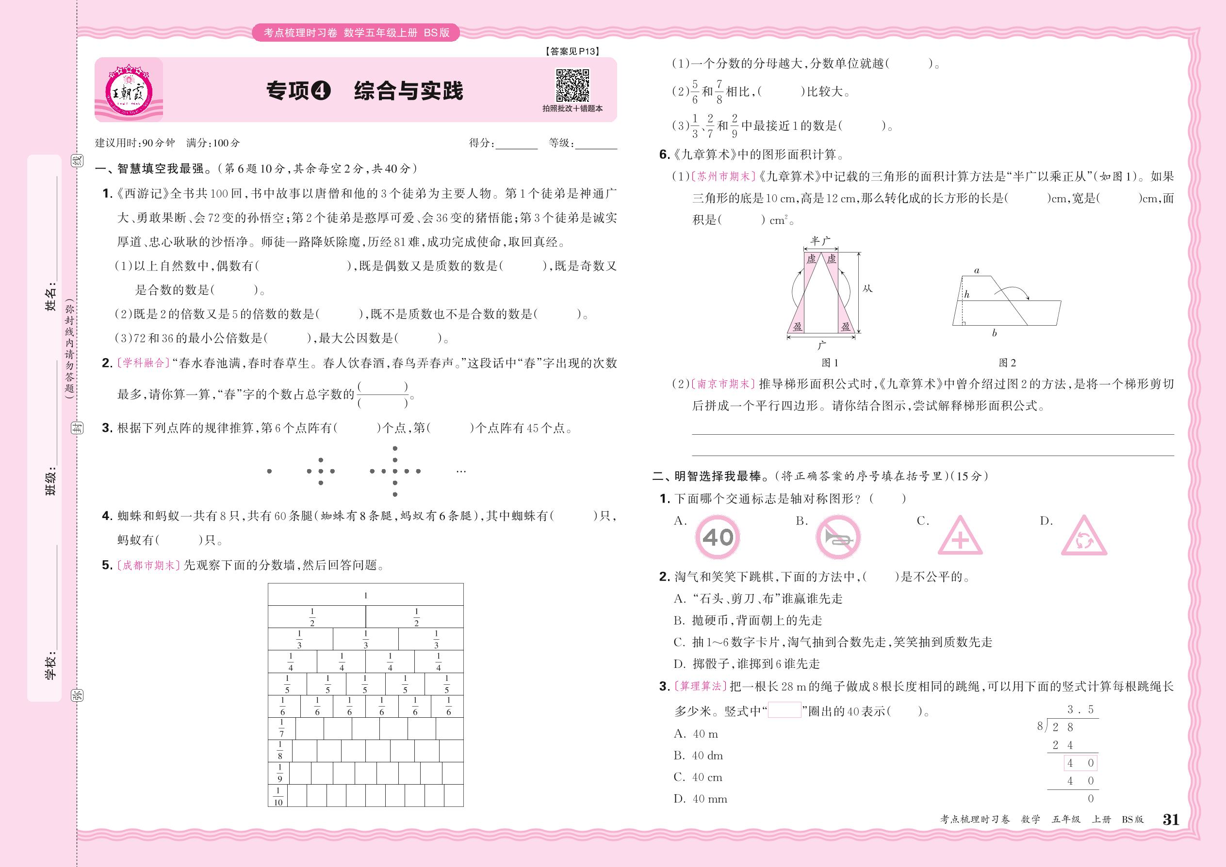 2024秋上册五年级数学北师版 期末专项卷KD版·综合与实践【4】