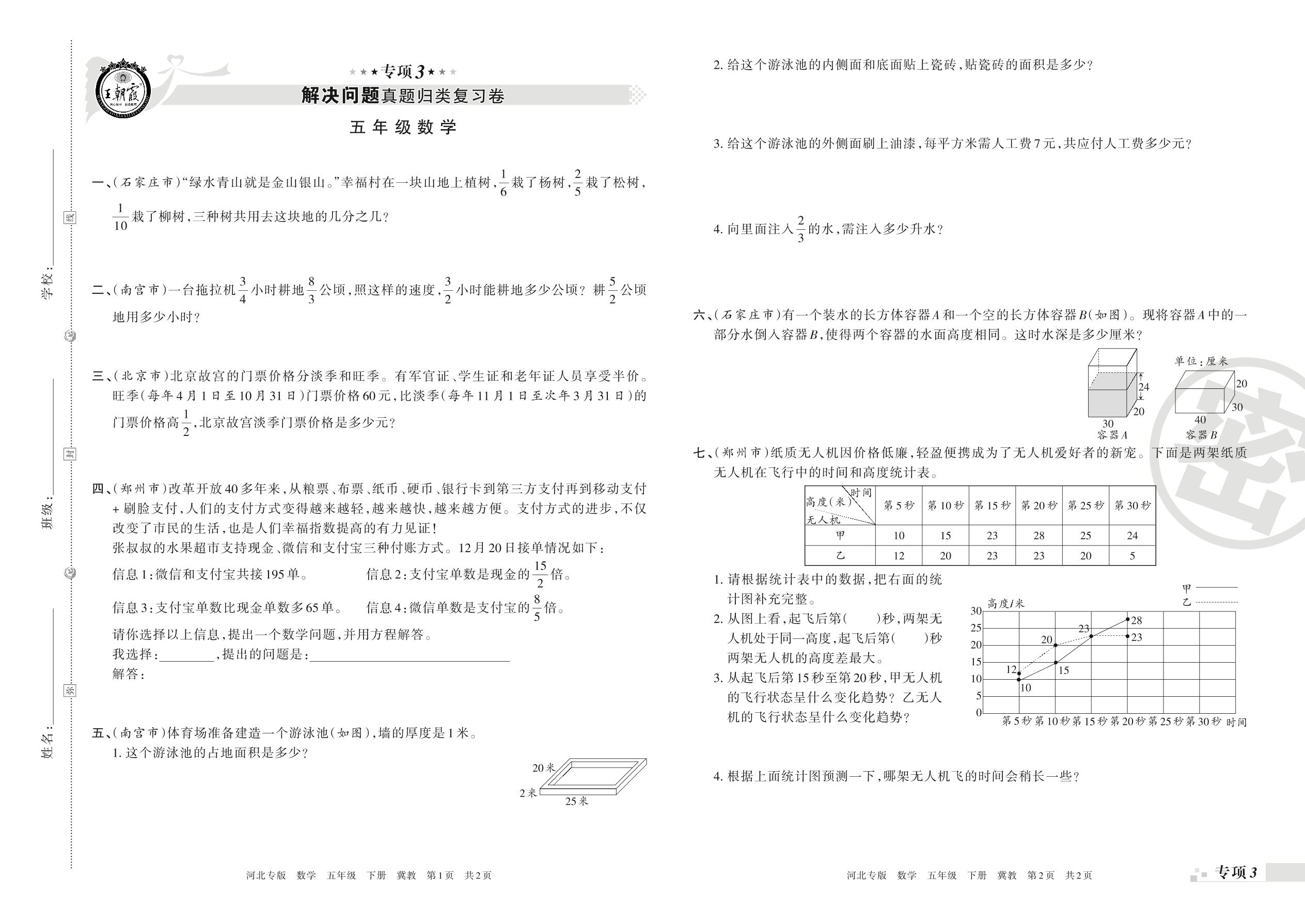 王朝霞期末专项卷——解决问题真题归类复习、新颖题速递:生活与数学五年级下册数学(冀教版)【0】