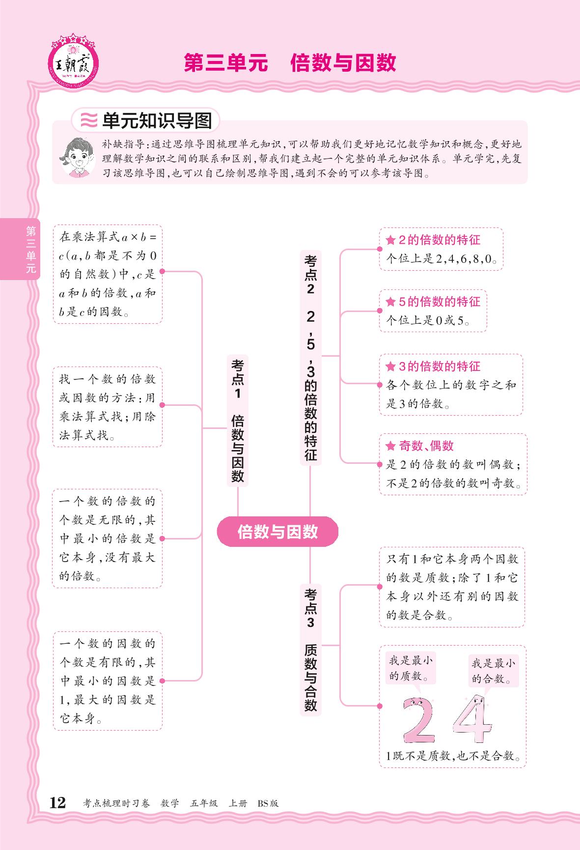 2024秋上册五年级数学北师版 考点梳理补缺手册——第三单元 倍数与因数