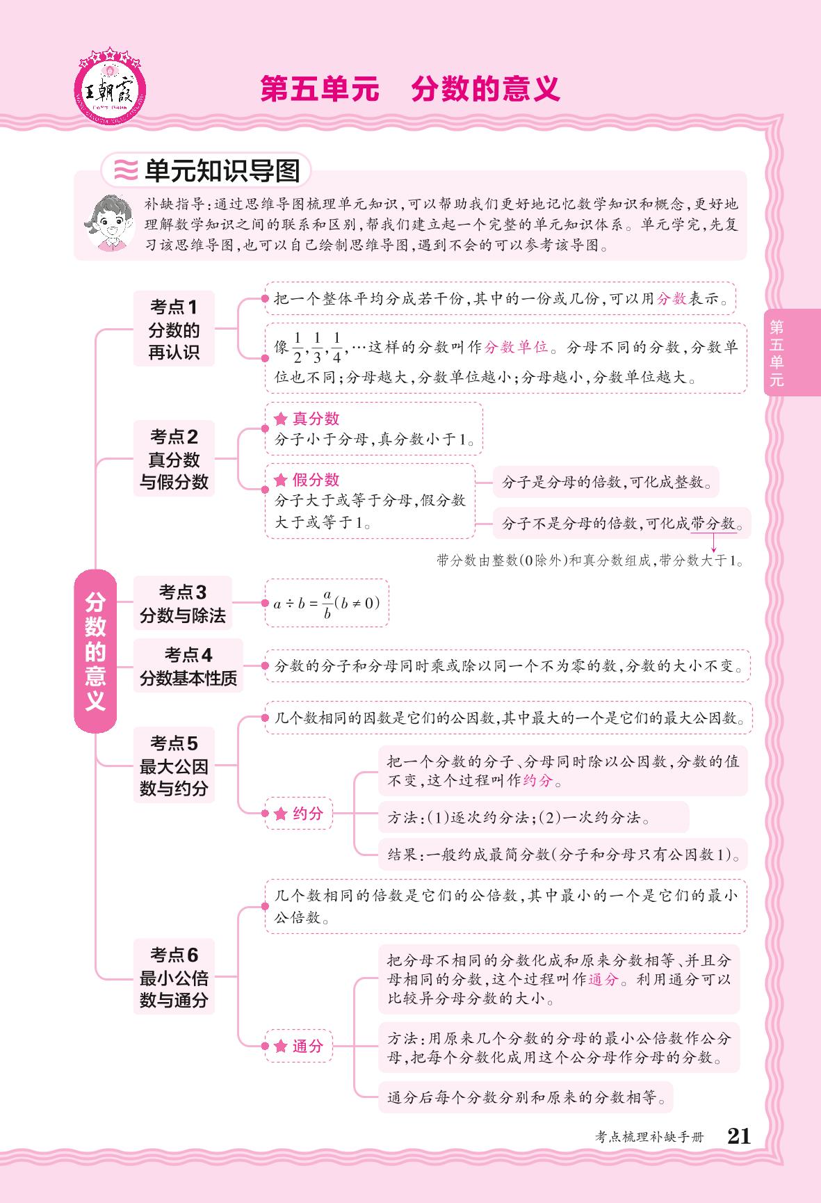 2024秋上册五年级数学北师版 考点梳理补缺手册——第五单元 分数的意义