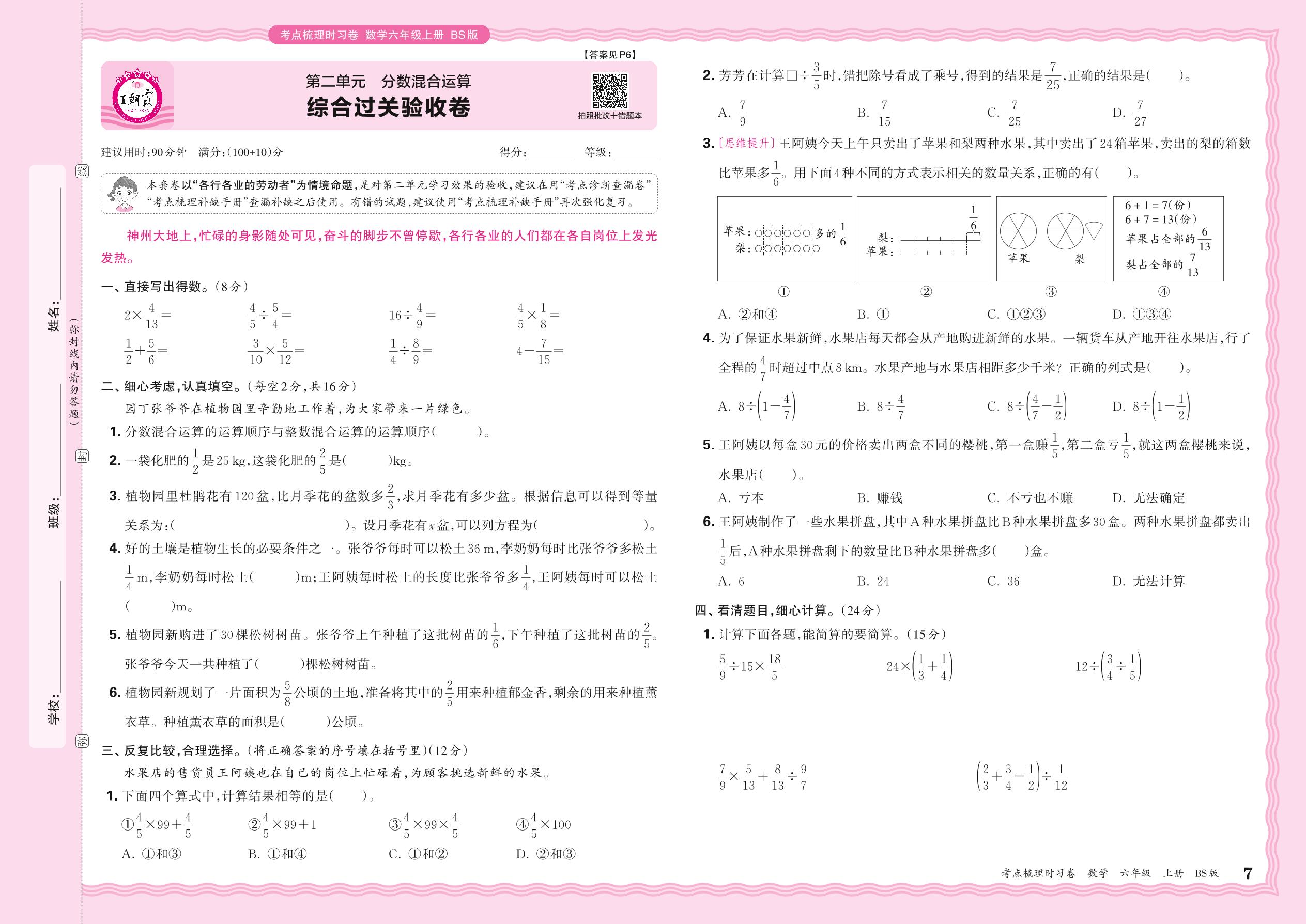 2024秋上册六年级数学北师版 第二单元 综合过关验收卷
