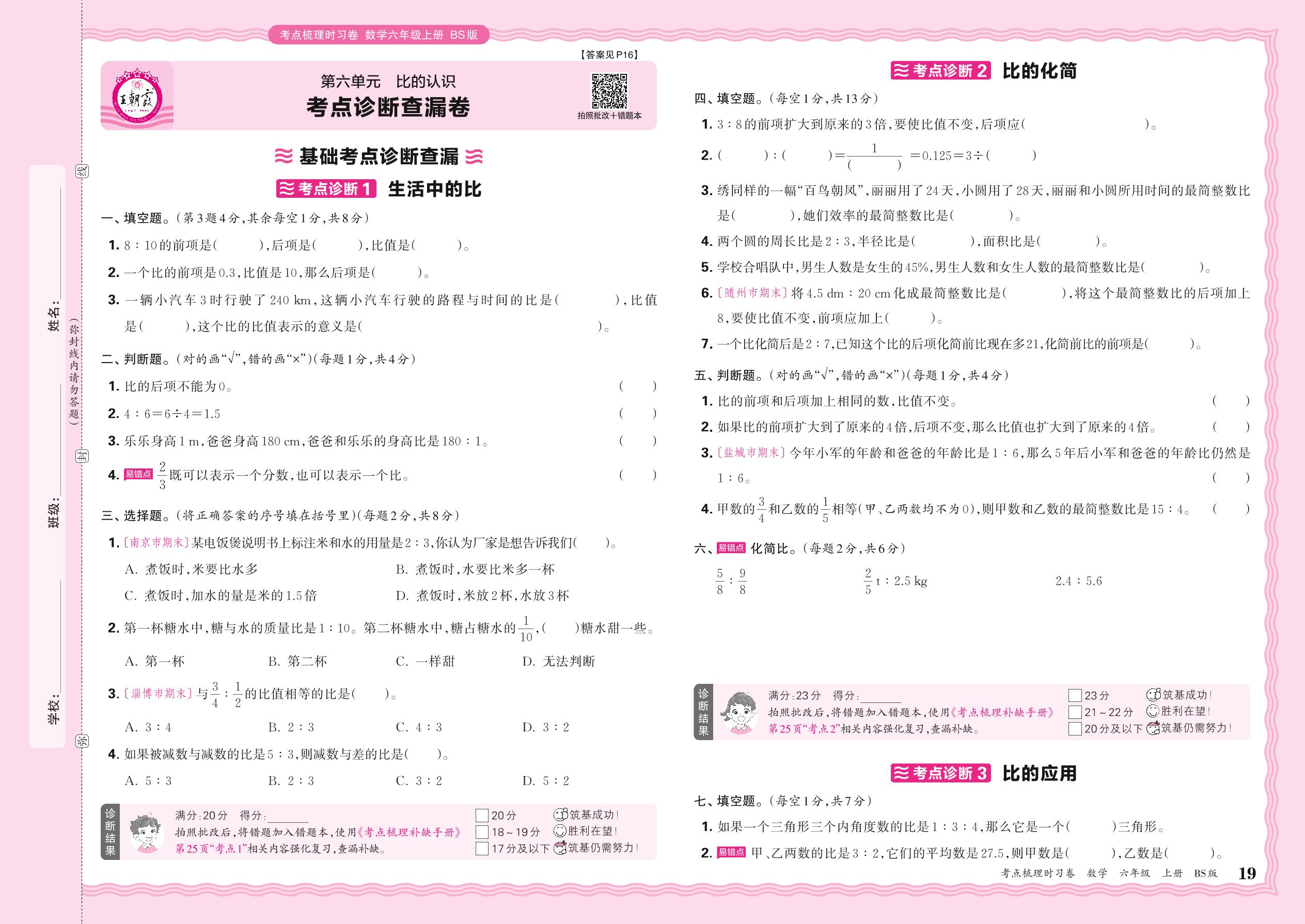 2024秋上册六年级数学北师版 第六单元 考点诊断查漏卷