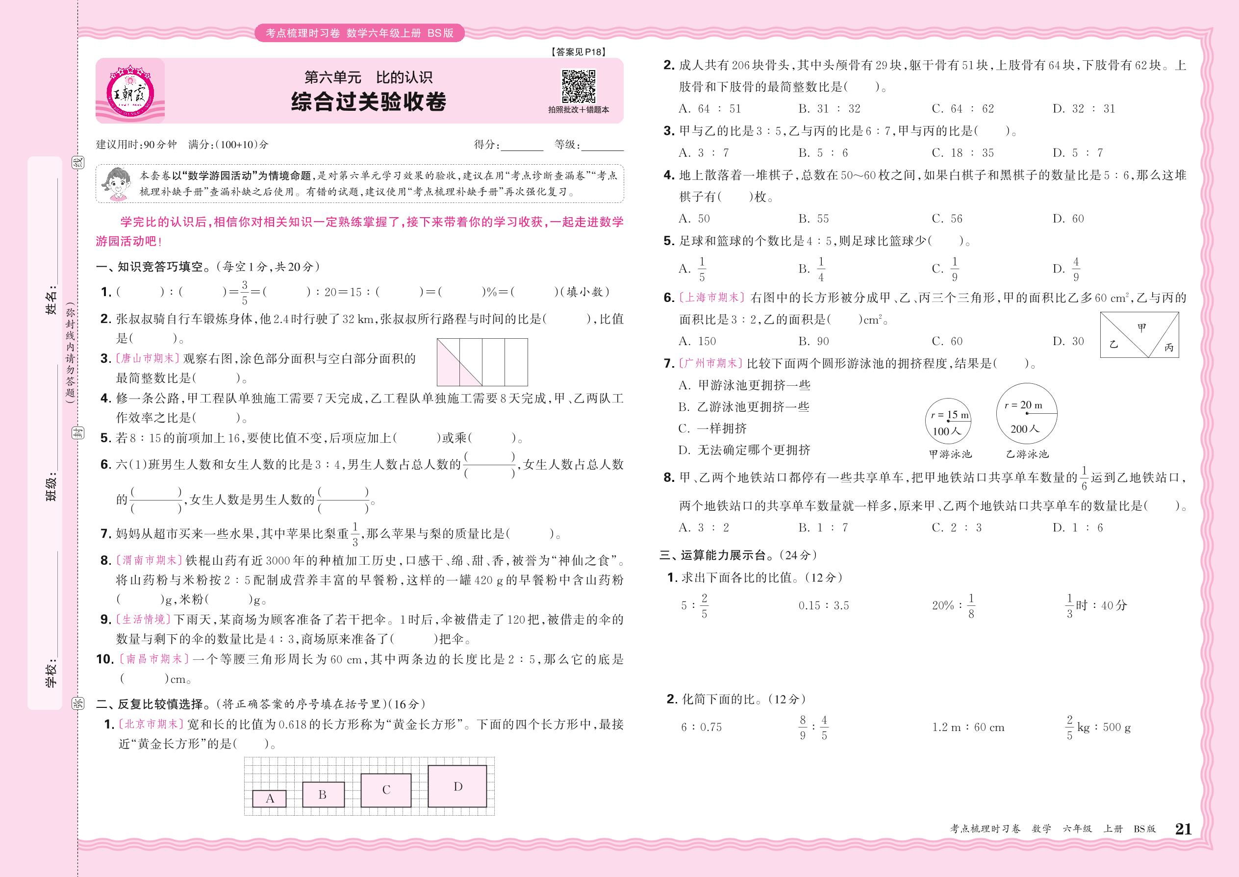 2024秋上册六年级数学北师版 第六单元 综合过关验收卷