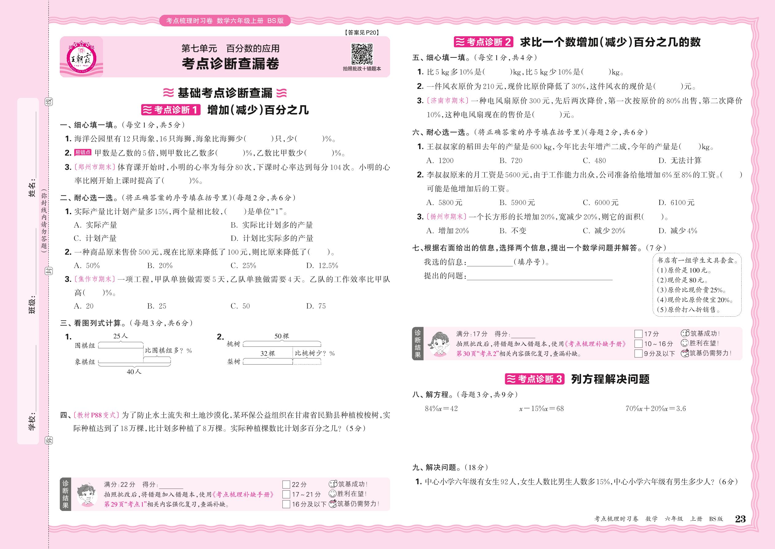 2024秋上册六年级数学北师版 第七单元 考点诊断查漏卷