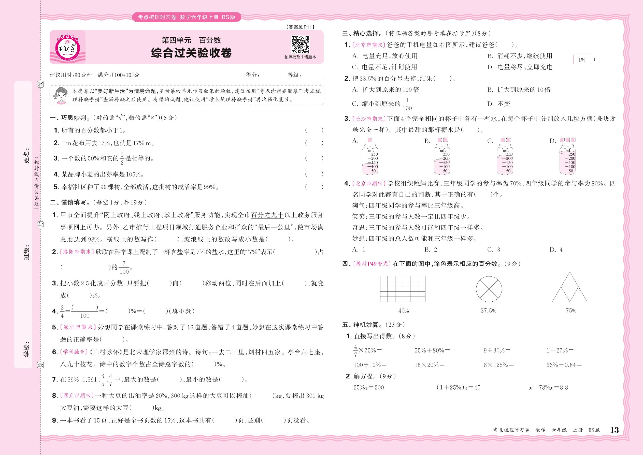 六年级数学北师版上册单元卷