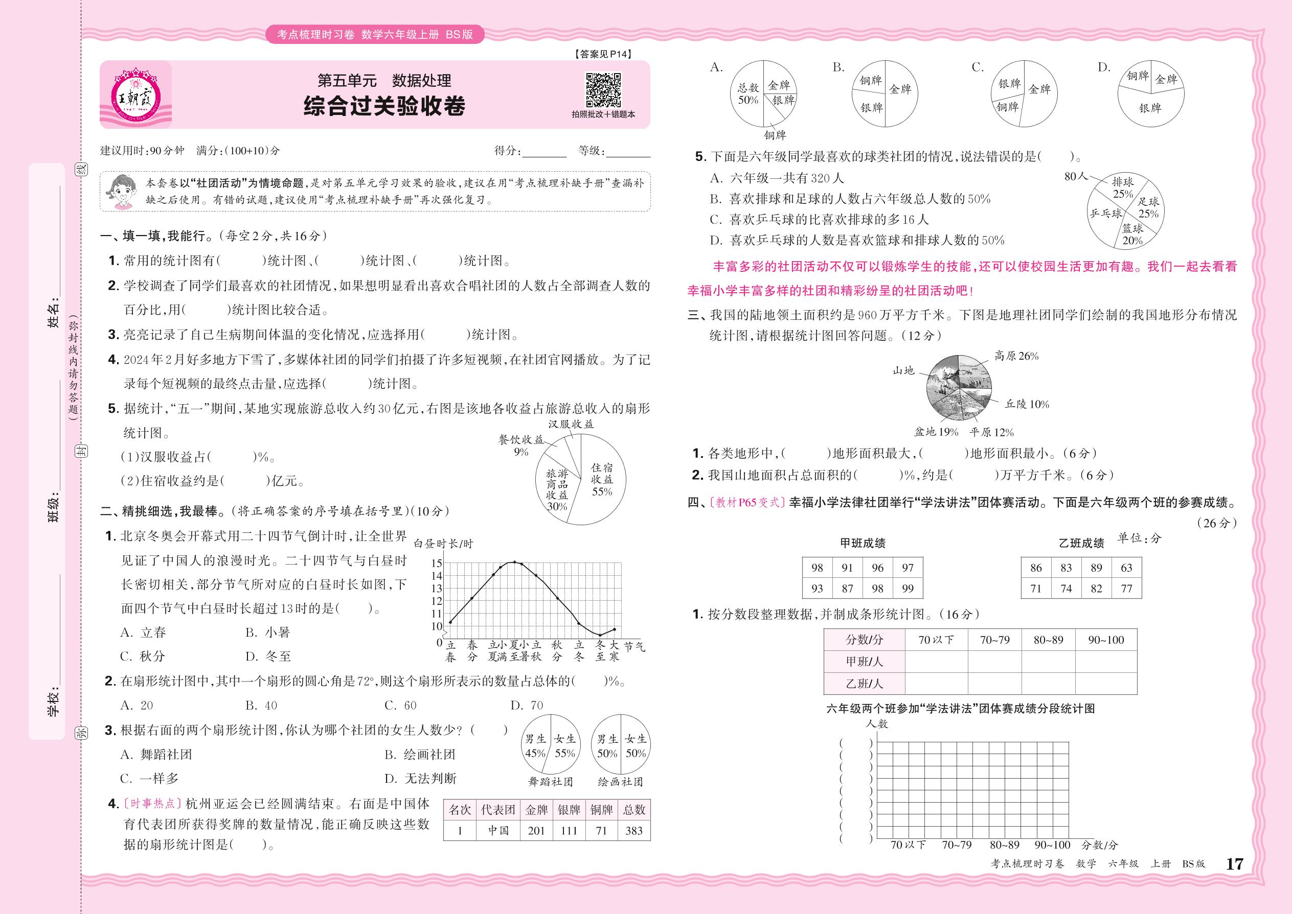 2024秋上册六年级数学北师版 第五单元 综合过关验收卷