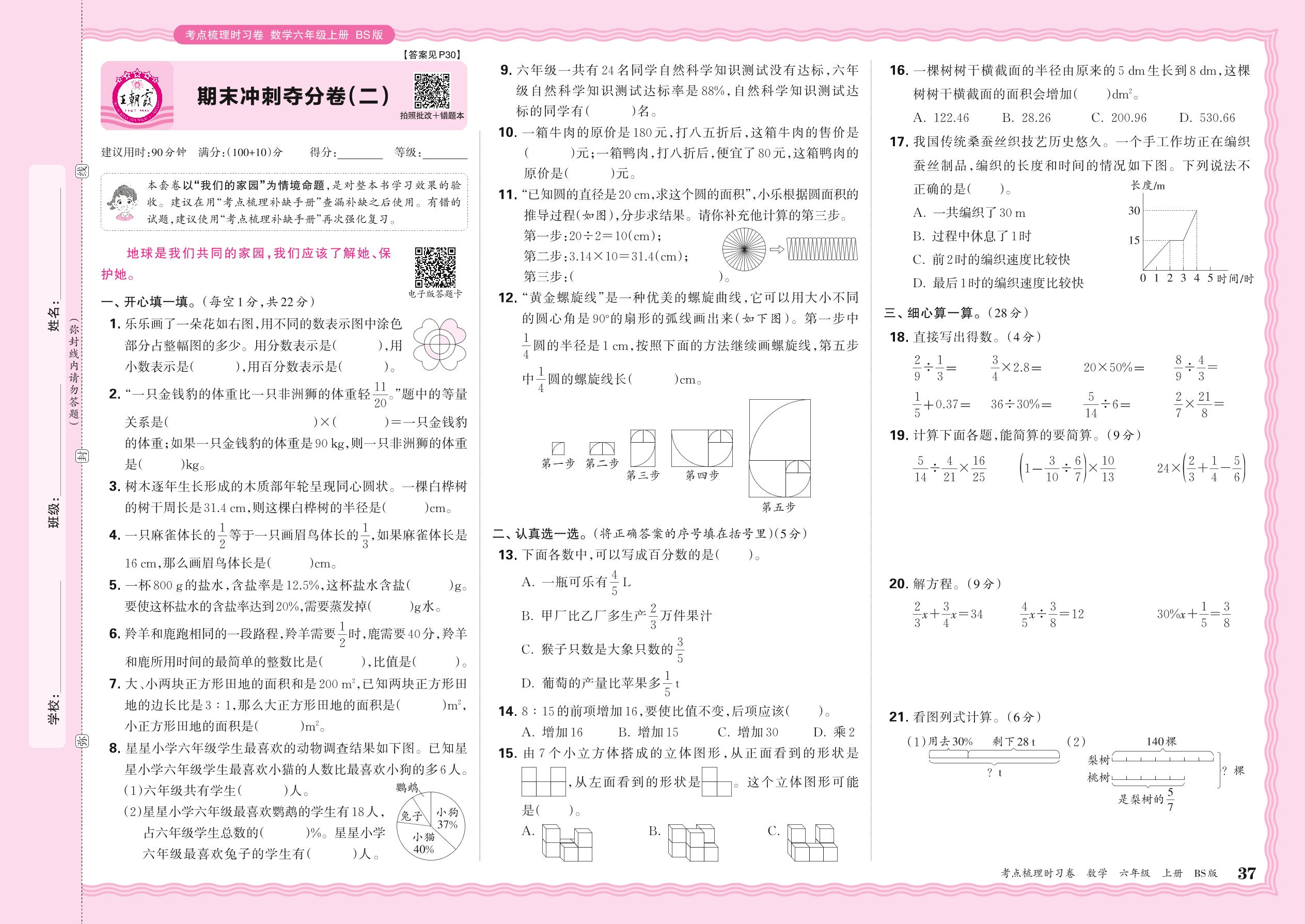 2024秋上册六年级数学北师版 期末冲刺夺分卷(二)
