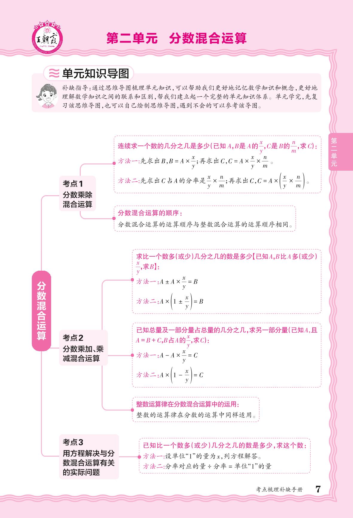 2024秋上册六年级数学北师版 考点梳理补缺手册——第二单元 分数混合运算