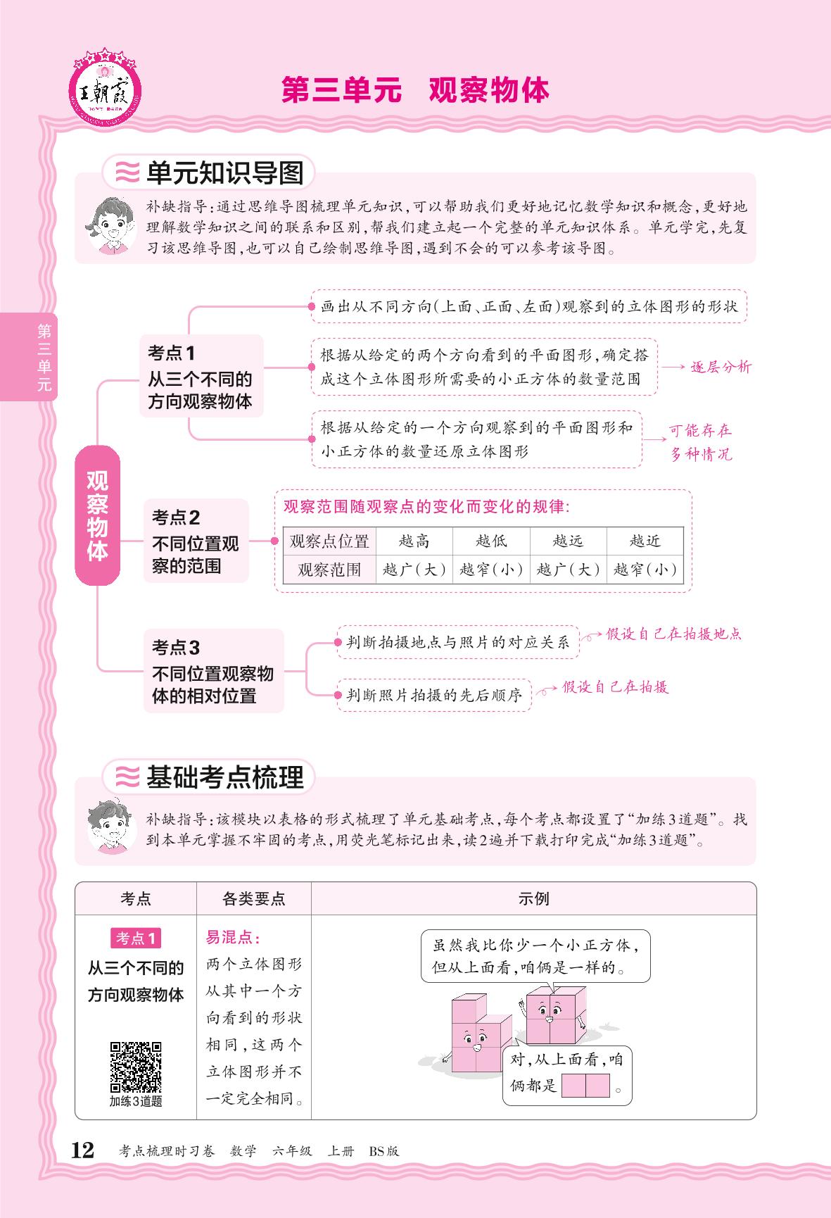 2024秋上册六年级数学北师版 考点梳理补缺手册——第三单元 观察物体