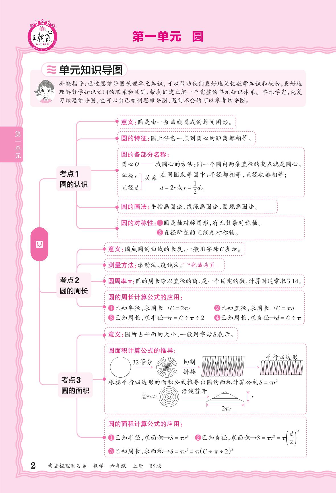 2024秋上册六年级数学北师版 考点梳理补缺手册——第一单元 圆
