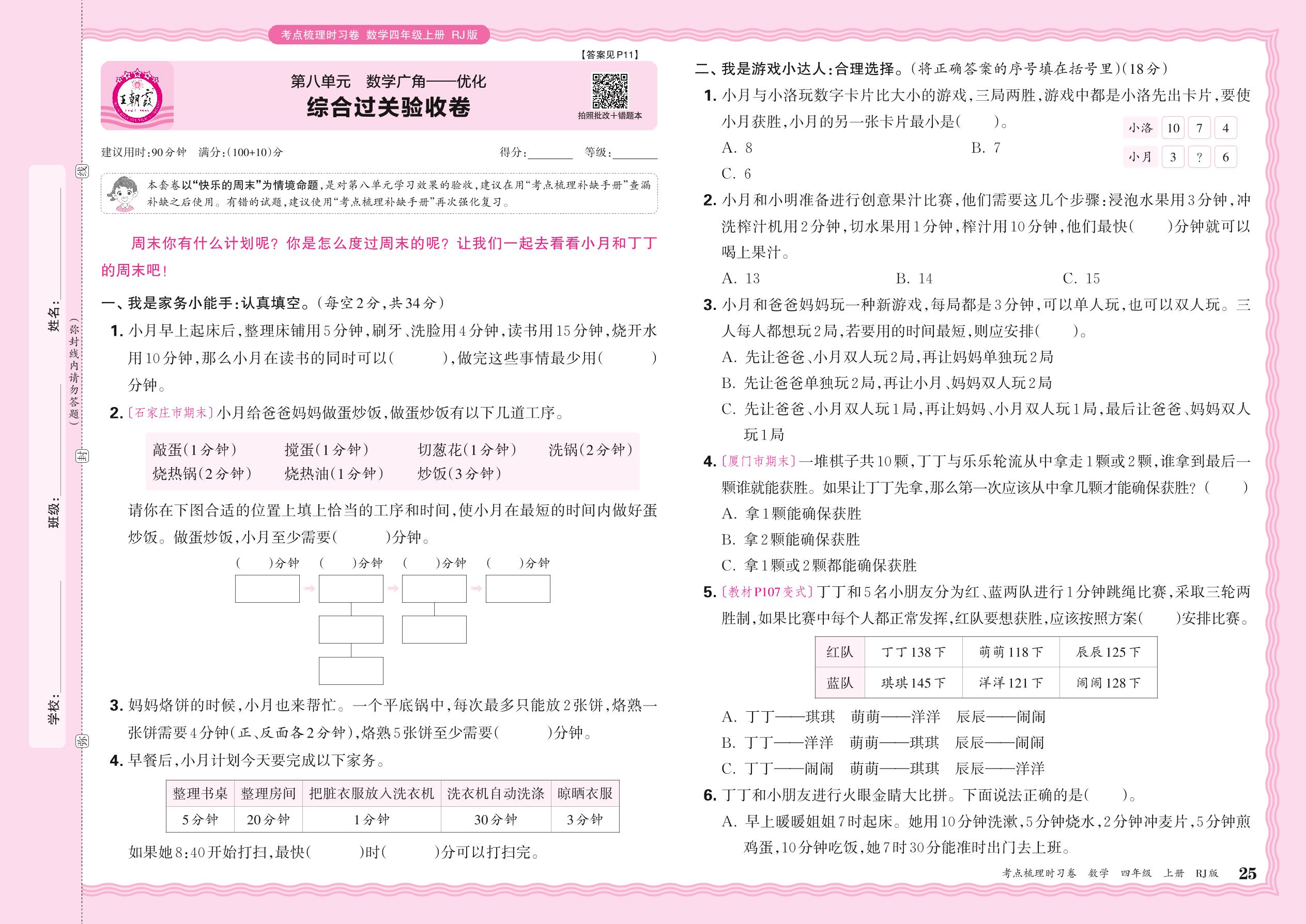 2024秋上册四年级数学人教版 第八单元 综合过关验收卷