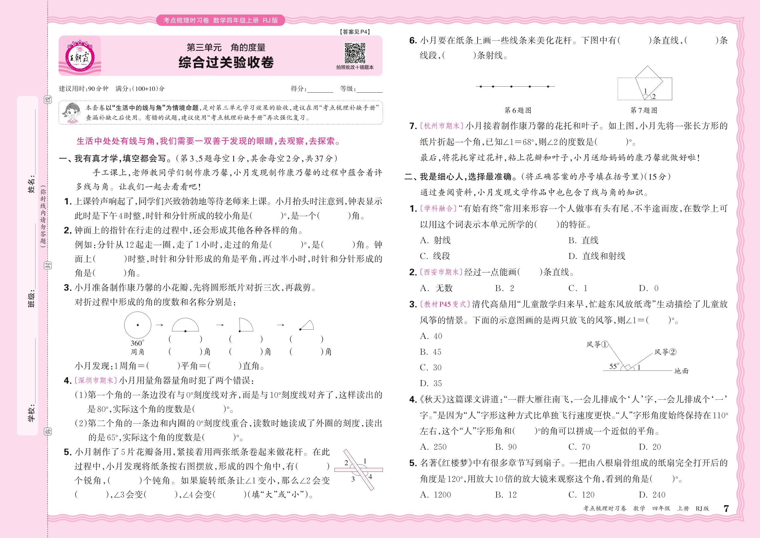 2024秋上册四年级数学人教版 第三单元 综合过关验收卷