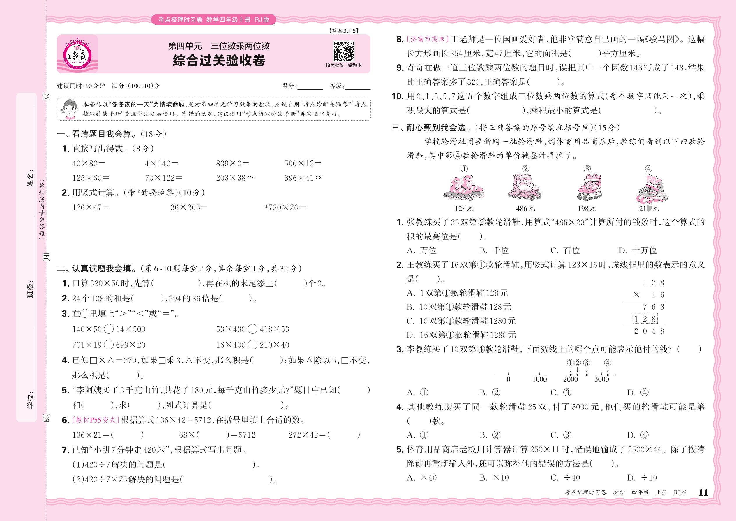 2024秋上册四年级数学人教版 第四单元 综合过关验收卷