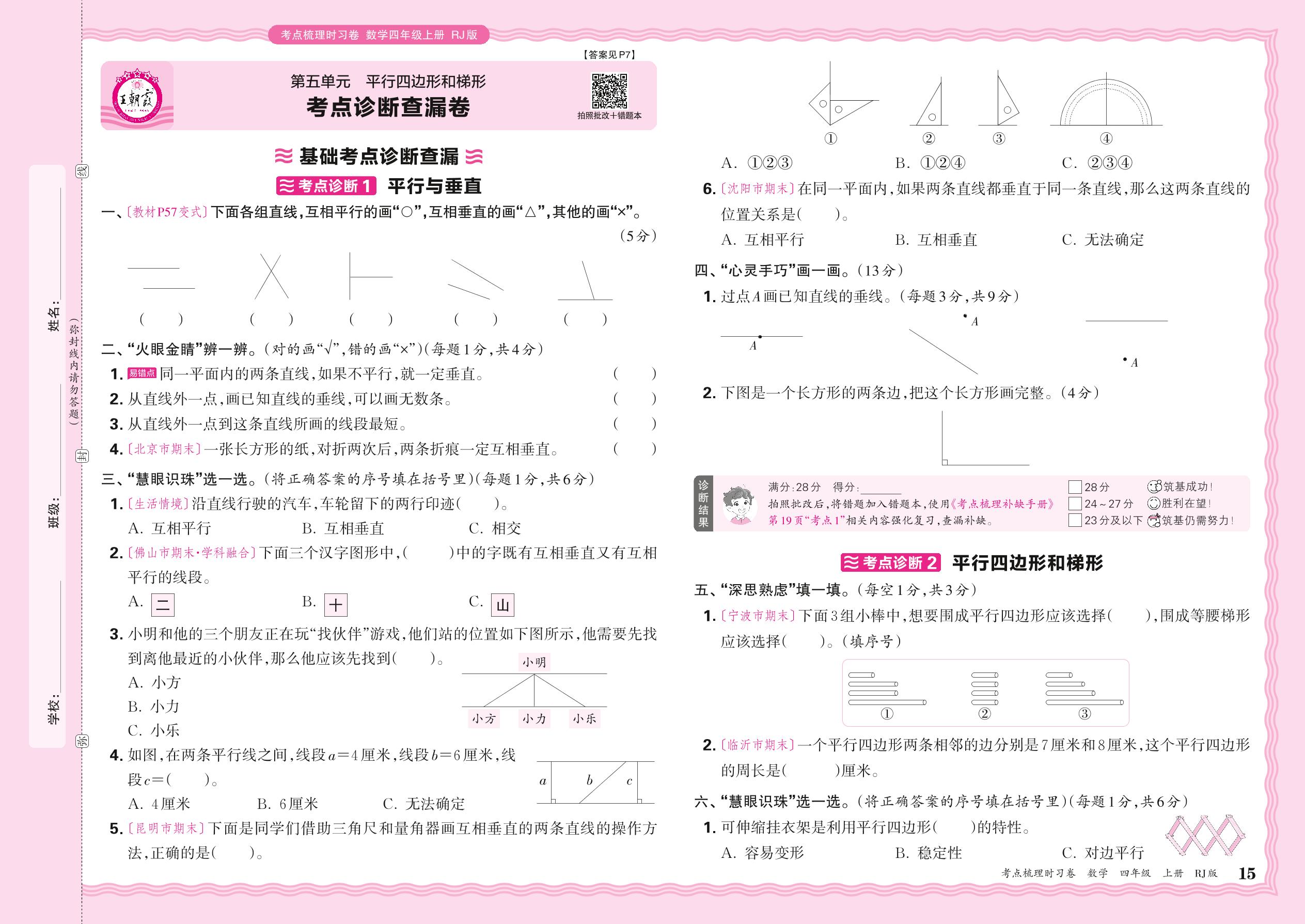 2024秋上册四年级数学人教版 第五单元 考点诊断查漏卷