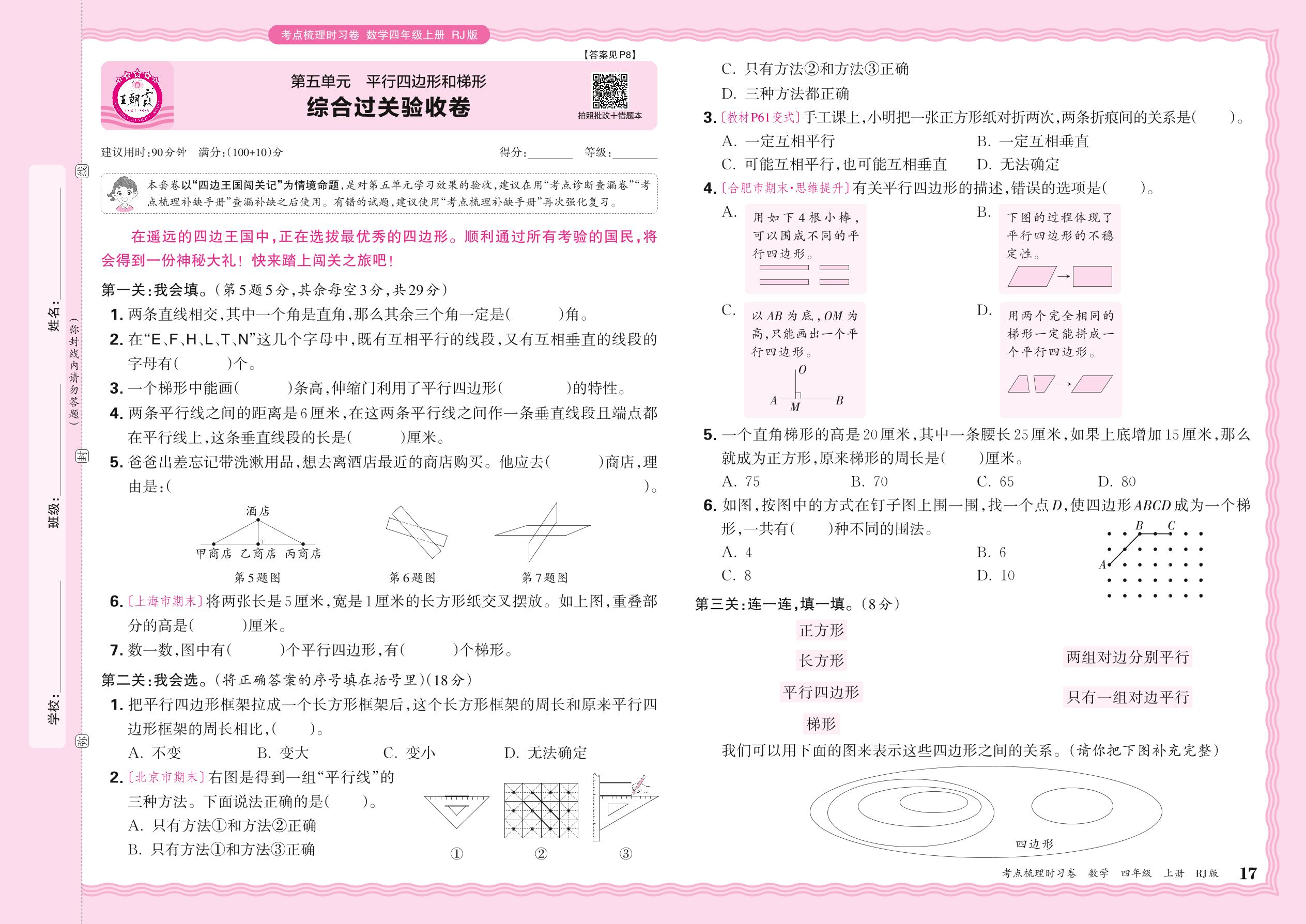 2024秋上册四年级数学人教版 第五单元 综合过关验收卷