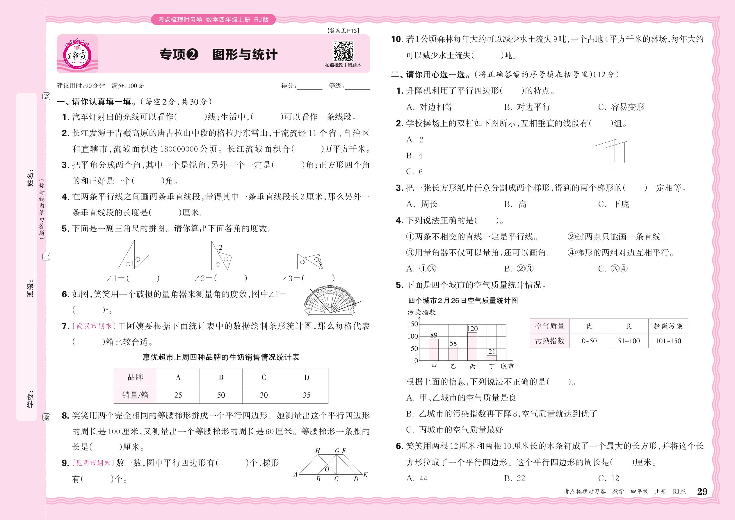 2024秋上册四年级数学人教版 期末专项卷KD版·图形与统计【2】