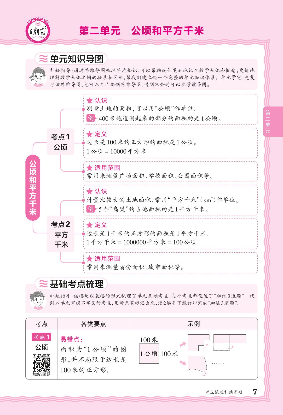 2024秋上册四年级数学人教版 考点梳理补缺手册——第二单元 公顷和平方千米