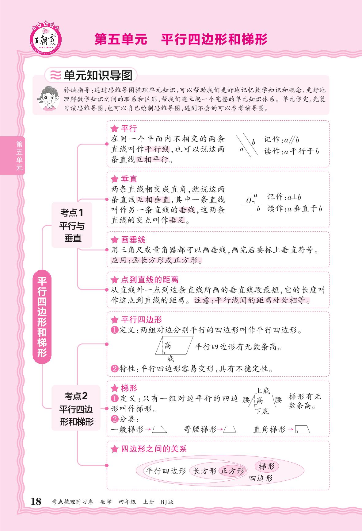 2024秋上册四年级数学人教版 考点梳理补缺手册——第五单元 平行四边形和梯形