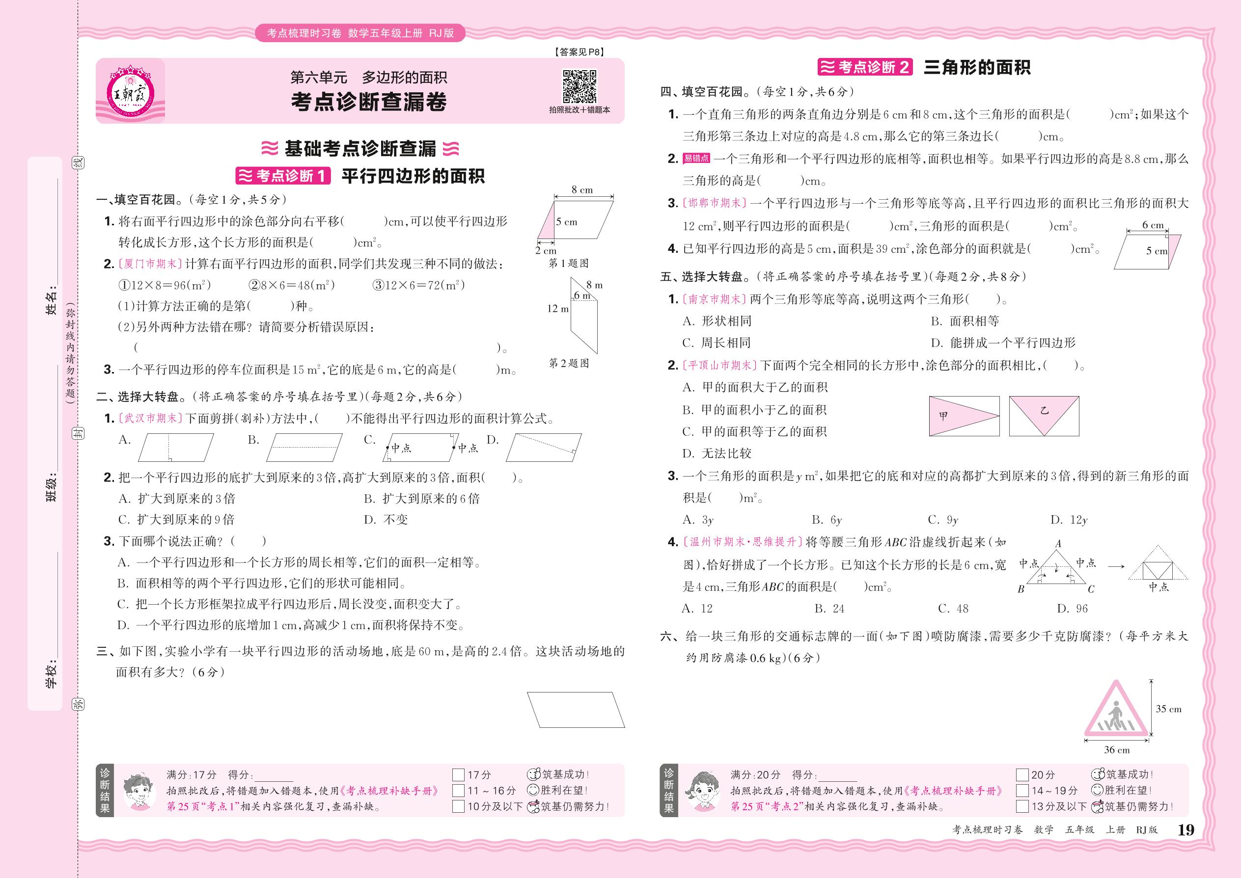2024秋上册五年级数学人教版 第六单元 考点诊断查漏卷