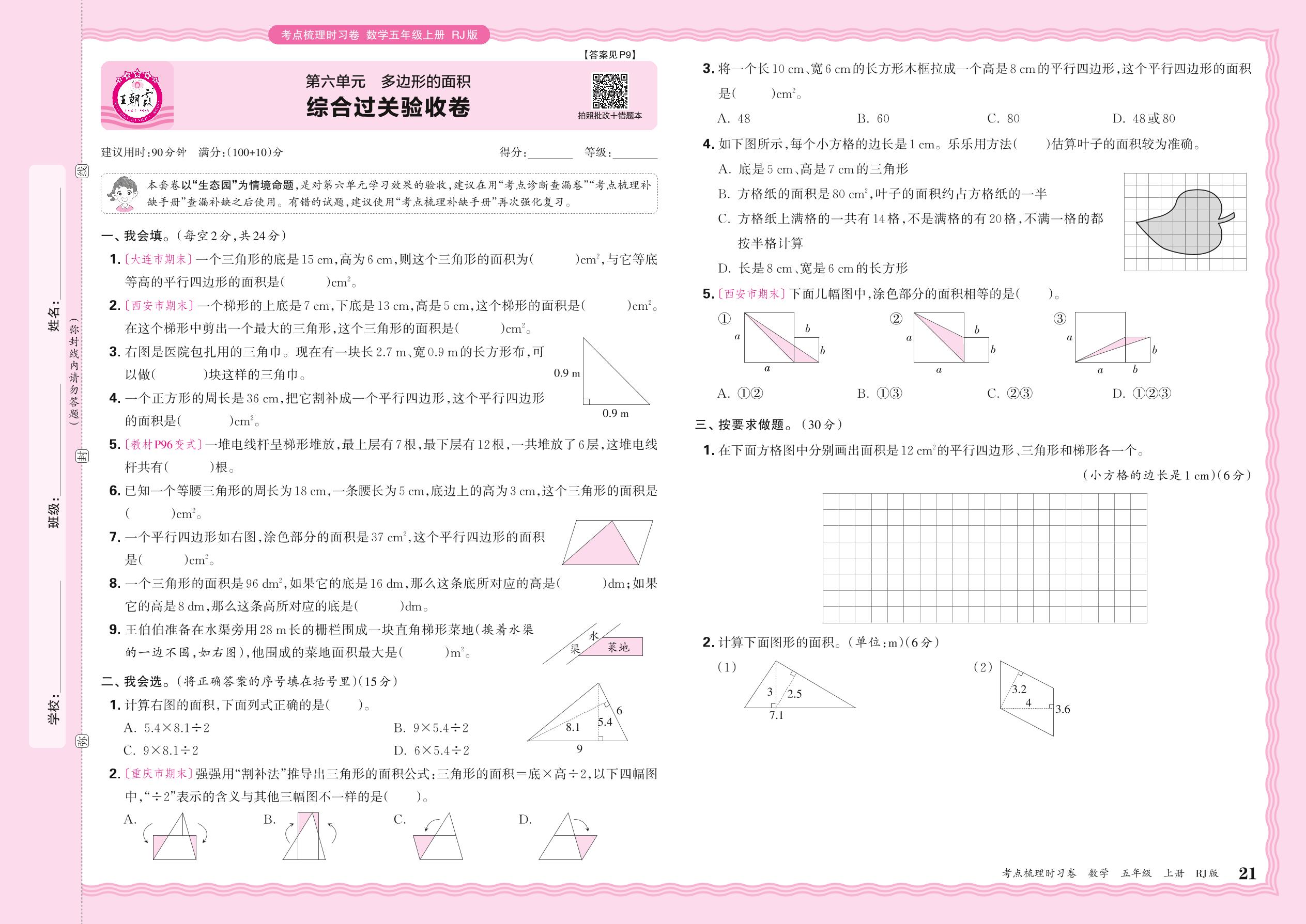 2024秋上册五年级数学人教版 第六单元 综合过关验收卷
