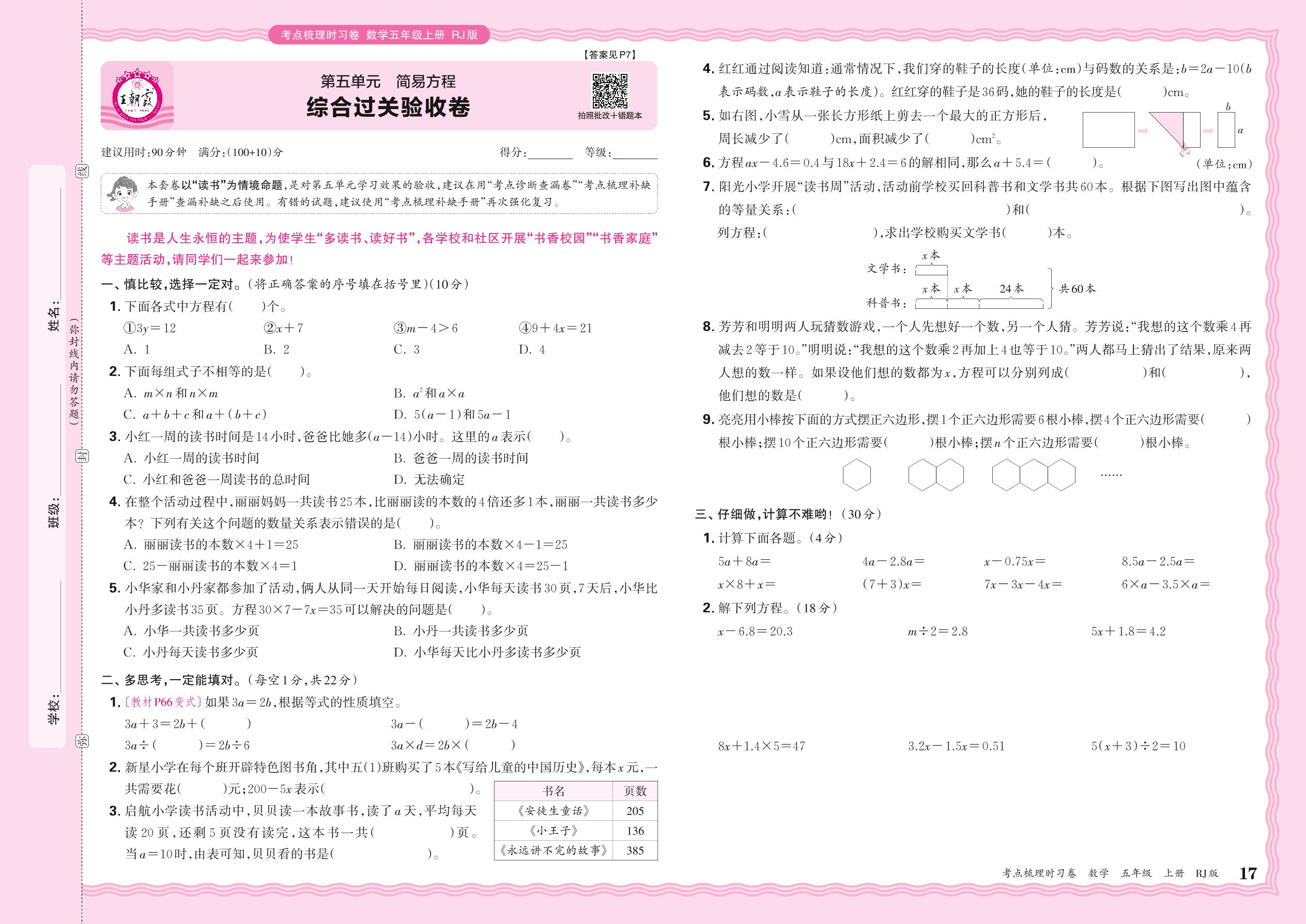 2024秋上册五年级数学人教版 第五单元 综合过关验收卷