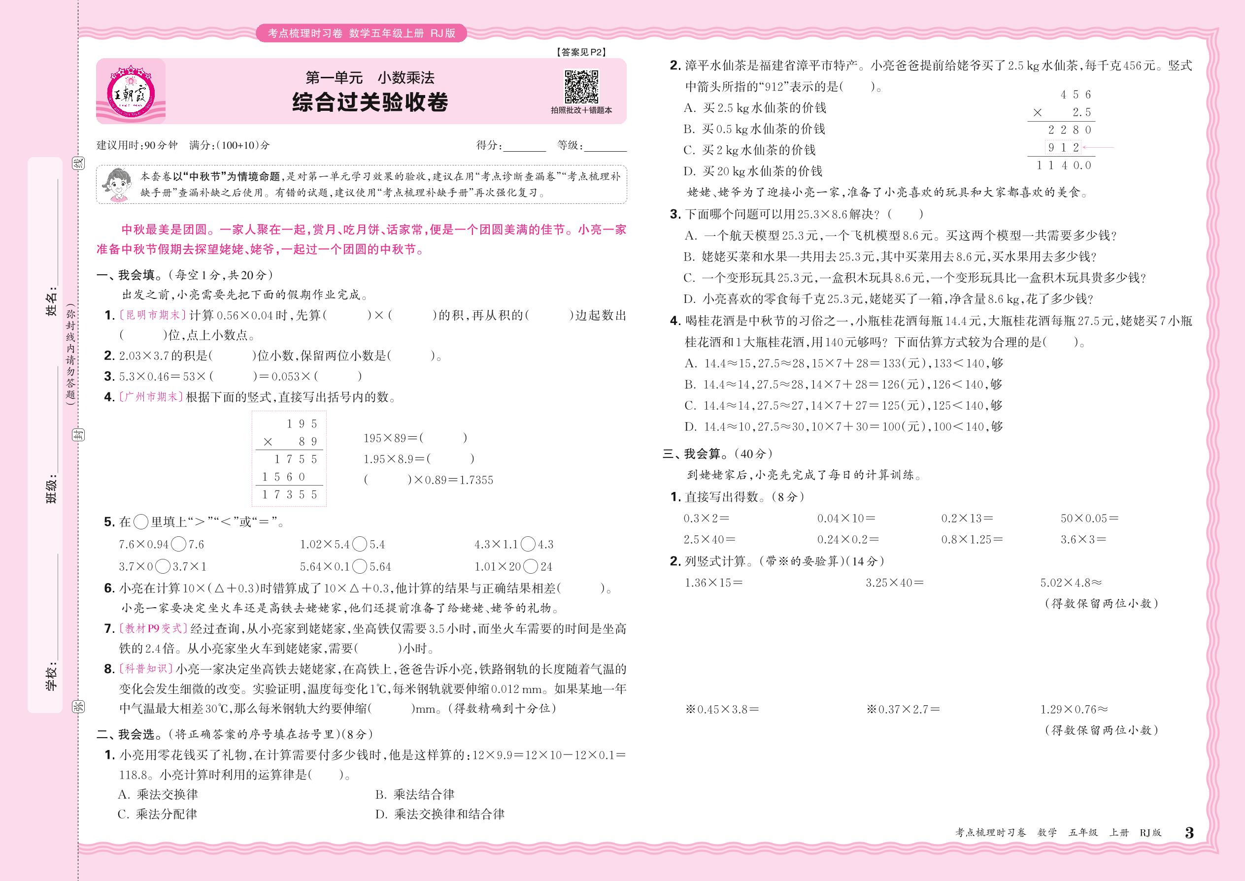 2024秋上册五年级数学人教版 第一单元 综合过关验收卷