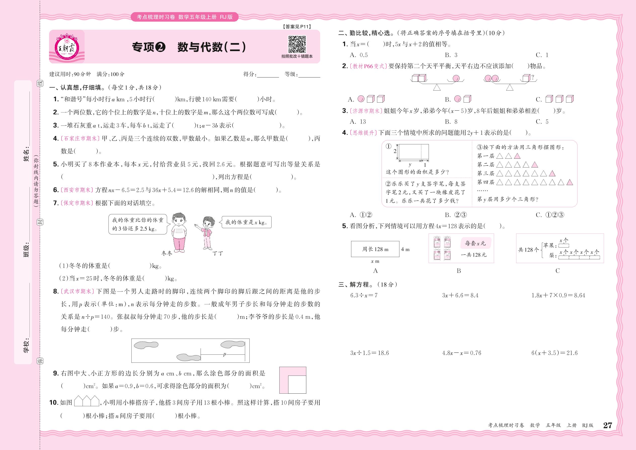 五年级数学人教版上册专项卷
