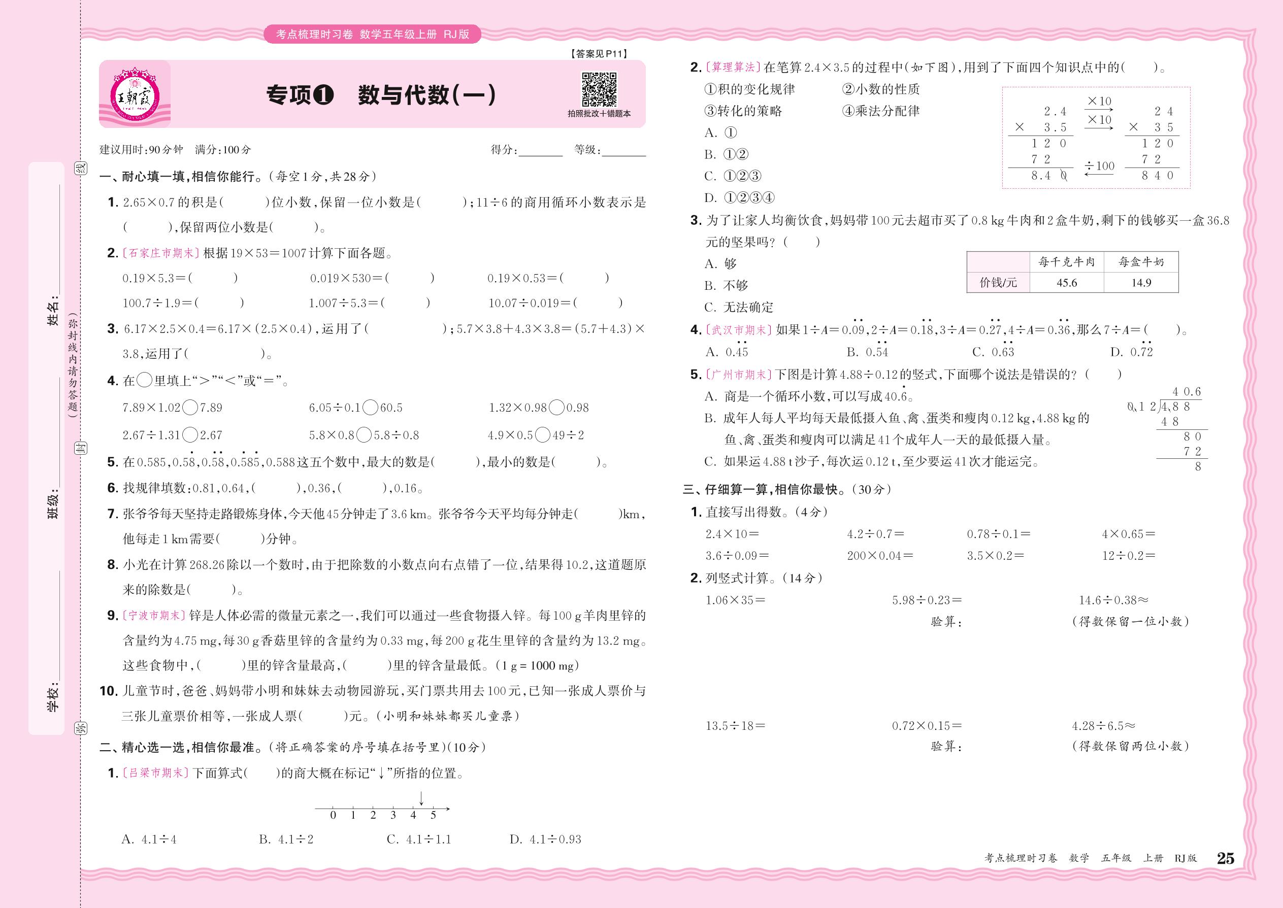 2024秋上册五年级数学人教版 期末专项卷KD版·数与代数(一)【1】