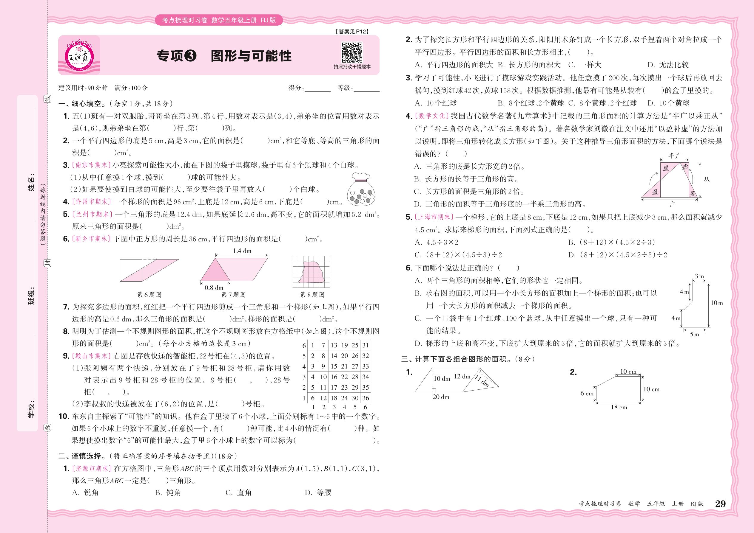 2024秋上册五年级数学人教版 期末专项卷KD版·图形与可能性【3】