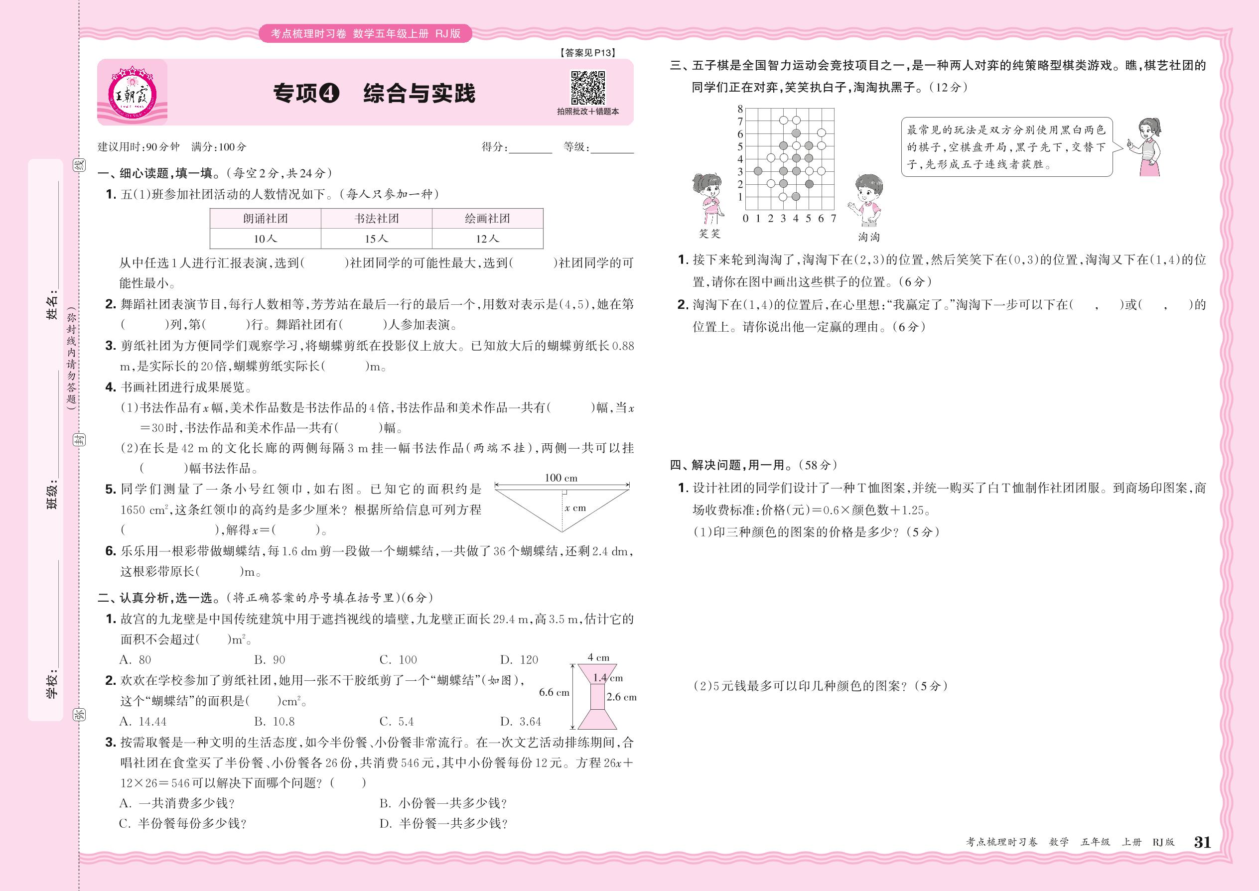 2024秋上册五年级数学人教版 期末专项卷KD版·综合与实践【4】