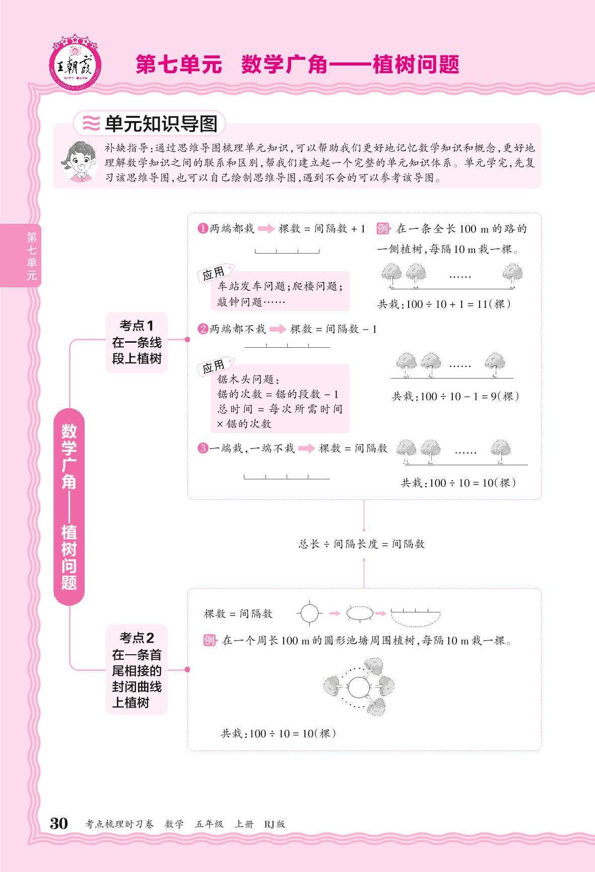 2024秋上册五年级数学人教版 考点梳理补缺手册——第七单元 数学广角 植树问题