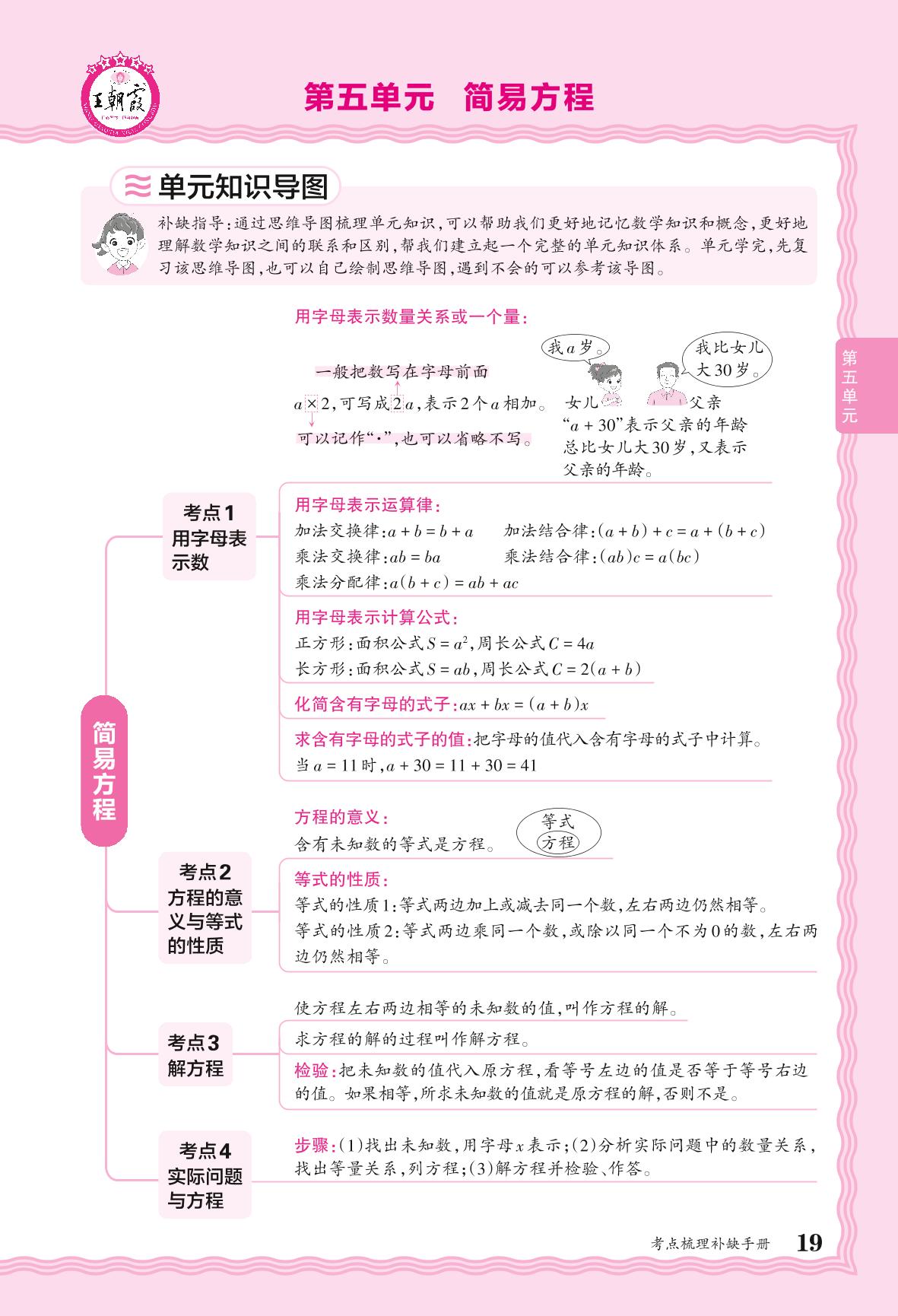 2024秋上册五年级数学人教版 考点梳理补缺手册——第五单元 简易方程